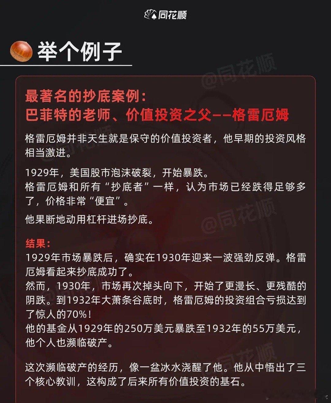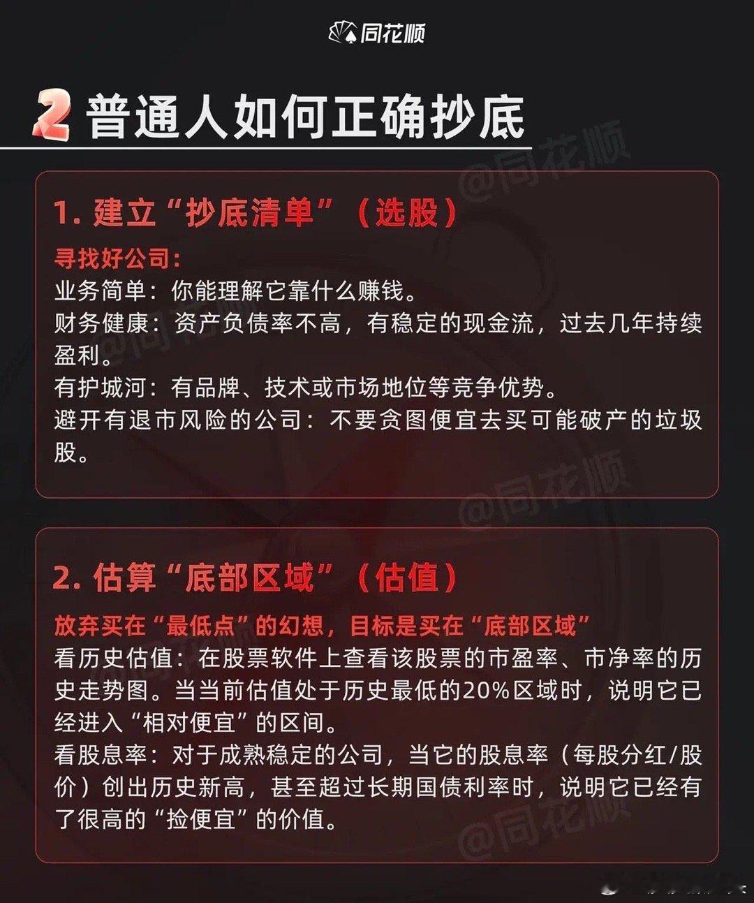 抄底,顾名思义就是投资者认为股票的价格已经下跌到了最低点或某个底部区域,于是果断买入,期待价格很快会反弹上涨,从而赚取丰厚利润的投资行为。但究竟怎样的价格是“最低点”,事实上很难判断。华尔街有句谚语叫不要接飞刀,你以为你在抄底,但也许你在接飞刀。