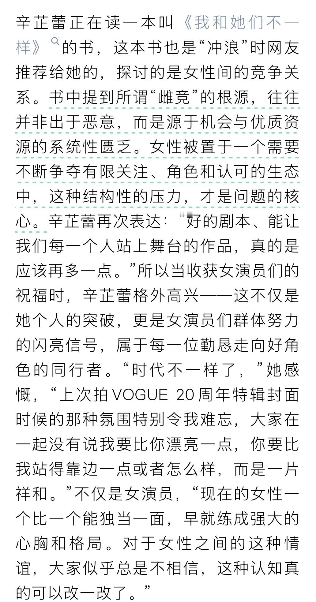 【】《我和她们不一样》辛芷蕾主演的新片《日掛中天》还在热映中,你去看了吗?比起在威尼斯电影节摘得影后的风光无限,辛芷蕾获奖后为女孩们的发声更显出她的敏锐和格局在采访时,她还提到了最近在读 的《我和她们不一样》,提到“女性被置于一个需要不断争夺有限关注、角色和认可的生态中,这种结构的压力,才是问题的核心”,提到“对于女性之间的情谊,大家似乎总是不相信,这种认知真的可以改一改了”。而在《我和她们不一样》里,每个女孩都能从中看到自己,找到共鸣。作者索菲·帕斯曼敢想、敢写、敢承担一切批评:为什么我们要比拼谁最会当女人?-所有在父权制下长大的女孩都被迫雌竞,在被压缩的空间里相互倾轧。越是轻率地指责她人,越是陷入结构性压迫的陷阱。“雌竞”代表着女人的困境,不应是一种“罪名”。-这本书不是批判,不是理论,不是成长教科书,这是一本真正意义上的“女人之言”。【转发并关注我,下周一揪2位小可爱,各送一本!】(顺手评论和点赞可以提高中奖率~)