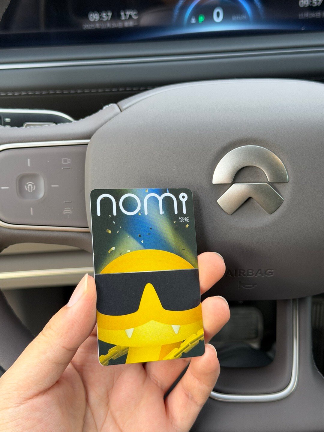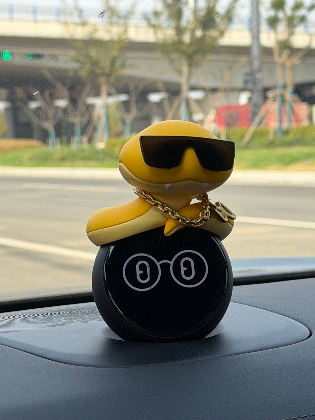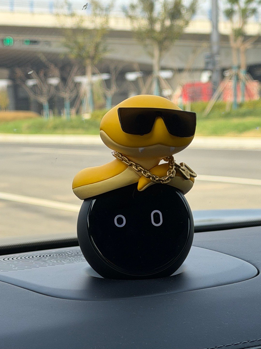 蔚来NOMI智能头饰不错,还有对应的声音 表情 口头禅等,很有意思,4款选择,我拿到的是「饶舌」,嘻哈风,不过汪总说它有点吓人,毕竟是🐍,所以回头换别的款。
