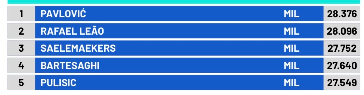 【⚡】 米兰客场vs国际米兰队,🔴⚫️ 帕夫洛维奇🇷🇸本场比赛最高冲刺时速达到28.376公里/每小时,位列全队第1️⃣位!!!
