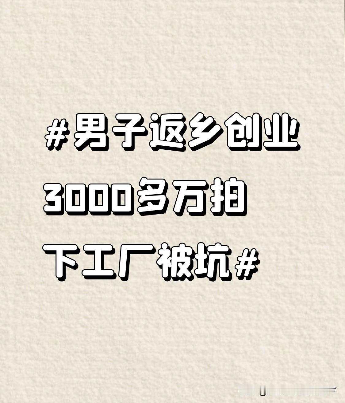 男子返乡创业3000多万拍下工厂被坑 男子返乡创业本是一腔热血,结果却被坑得惨不忍睹。山东菏泽的关成花3163万拍下破产企业,想着大展拳脚,谁能料到现场实物和竞拍时的评估报告严重不符,“百万设备”成了废铁,未报告的20余吨浓硫酸还成了麻烦。他实地查看时,租赁方不让进,只能在外面看,里面堆满垃圾,这就埋下了隐患。 无独有偶,河南新乡辉县一男子投资千万建厂,卡在办食品生产许可证上,核查员各种理由不到场,还被说“太老实”。创业不易,返乡创业更难,希望相关部门能保障创业者权益,别让他们的热情被冷水浇灭。
