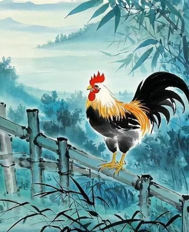 上联:犬卧柴门迎晓日, 下联:鸡立竹篱唤朝霞。