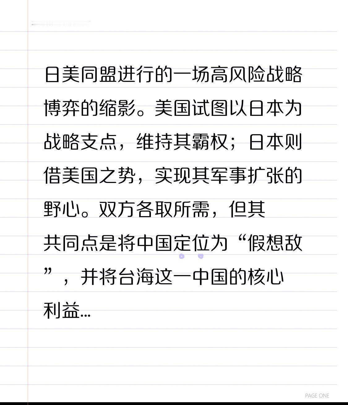 日美同盟进行的一场高风险战略博弈的缩影。美国试图以日本为战略支点,维持其霸权;日本则借美国之势,实现其军事扩张的野心。双方各取所需,但其共同点是将中国定位为“假想敌”,并将台海这一中国的核心利益区作为博弈的棋盘。