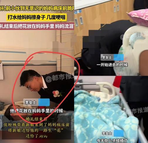泪目!河南一男子今天结婚,一大早打扮得帅帅气气的,却没先去接新娘,反倒第一时间冲到了医院,对着昏迷多年、毫无回应的妈妈,他双膝跪地,凑到耳边轻声喊:“妈,我今天结婚啦,你看看我帅不帅?” 有人说,妈妈在,这个家就在。 男人大婚当天,西装革履打扮得一丝不苟,本该直奔新娘家的他,却转身扎进了医院。 病床上,是昏迷一年、对外界毫无回应的母亲。 这些年来,生活的重担一直压在母亲的身上,母子两个相依为命多年,眼瞅着儿子已经找了工作,正是孝顺的时候。 偏偏母亲因为脑出血,躺在了病床上。 这一年,他没错过一天的陪伴,喂饭、擦身、按摩、讲故事,把“久病床前无孝子”的俗语,活成了“久病床前见真心”的典范。 “妈,我今天结婚了,你看看我帅不?”他双膝跪地,声音轻得像怕惊碎梦境,却带着藏不住的郑重。 没有轰轰烈烈的誓言,只有对母亲最朴素的牵挂;没有急于奔赴新婚的急切,只有把母亲放在首位的笃定。 他絮絮叨叨说着成家的心愿,又仔仔细细给母亲擦脸、擦手,掖好被角,确认一切妥当,才匆匆赶去接亲。 婚礼仪式刚结束,他连喜宴都没顾上多坐,拉着新娘就往医院赶。 病房里,心电监护仪的滴答声格外清晰,他轻声呢喃:“妈,我把媳妇带回来给你看了,以后我们一起照顾你。” 新娘也俯身轻语:“妈,以后我就是你的女儿,咱们一家人整整齐齐的。” 母亲眼角突然渗出一滴泪水,缓缓划过苍白的脸颊,滴落在枕头上。 多少人劝他“别太执着”,多少人觉得他“不值当”,甚至有人在他谈对象时泼冷水:“带着个昏迷的妈,谁愿意嫁你?” 可他从未动摇,“那是我妈,我不能不管”。 现实里,太多人把 “孝顺” 挂在嘴边,却在父母需要贴身照料时找尽借口;太多人把 “担当” 喊得响亮,却在家庭责任面前退缩逃避。 有人觉得照顾卧床病人是 拖累,有人把父母的付出当作理所当然,更有人在婚恋中把彩礼多少、房子大小当作首要标准,却忘了人品才是最硬的底牌。 久病床前无孝子?根本不是没有孝子,而是自私者找不出坚持的理由。 男人的帅,无关皮囊,无关排场,是刻在骨子里的善良与担当。 他用行动证明:对母亲有敬畏、有牵挂的人,对家庭必然有坚守、有温度。 当下的婚恋市场,太多人陷入功利的漩涡,计较着物质的得失,却忽略了最本质的人品。 可婚姻的长久,从来不是靠彩礼撑起来的,而是靠彼此的责任与担当;幸福的底色,从来不是物质的堆砌,而是骨子里的善良与温暖。 这个河南小伙的故事,给所有年轻人上了一课:真正的良缘,始于欣赏对方的人品;真正的帅气,源于藏不住的孝心与担当。 母亲的那滴泪水,是感动,是期许,更是无声的肯定。 愿这份孝心能唤醒更多人的初心,愿更多人明白:孝心不是一时的感动,而是一生的责任;婚姻不是物质的交易,而是人品的契合。 对于这件事,您有什么想说的吗?欢迎评论区留言讨论。 信息来源:都市报道