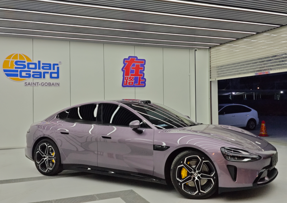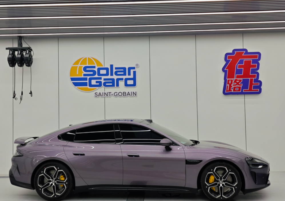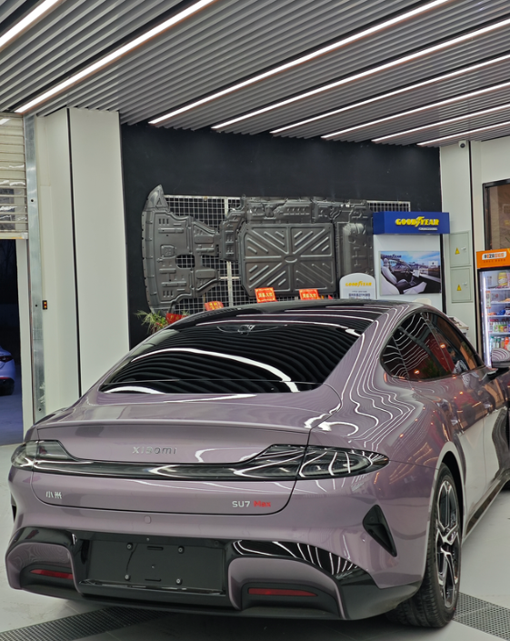 保时米漆面最亮 小米SU7提车日记保时米,su7也是客户联系我主动来店里看看,然后到了见了我人不废话,三言两语成交的,爽快人接触都不累。 虽说小米玻璃防紫外线,但是是真不隔热啊,而且这车施工需要异常小心。一不小心就可能就有玻璃刮坏的风险,所以需要找专业人专业门店干专业事啊 圣佳全车pro系列➕360全包脚垫配这个超柔紫色星空毯面,这反正我是真都不舍得踩啊