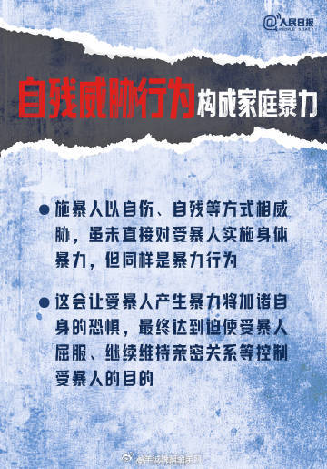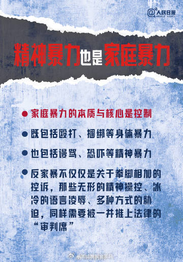 【勇敢说不!】今天是国际消除针对妇女暴力日,也被称为国际消除家庭暴力日。近日最高法发布,进一步强调司法态度对家暴的“零容忍”。谩骂恐吓、自残威胁、暴力管教也都构成家庭暴力,请勇敢对一切家庭暴力说“不”!