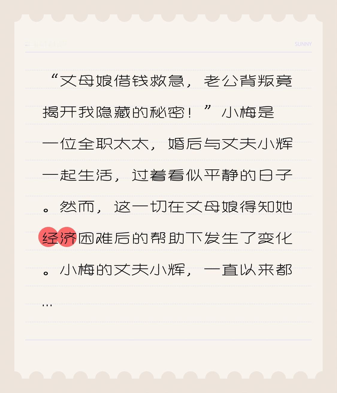 “丈母娘借钱救急,老公背叛竟揭开我隐藏的秘密!” 小梅是一位全职太太,婚后与丈夫小辉一起生活,过着看似平静的日子。然而,这一切在丈母娘得知她经济困难后的帮助下发生了变化。小梅的丈夫小辉,一直以来都沉默寡言,常常加班,大家都以为他是个努力工作、顾家的好男人。可没想到,他的背叛正像一阵狂风,暗中席卷了她的生活。 小梅在家照顾两个孩子,生活虽不富裕,但也算过得去。最近,丈夫的收入下降,夫妻俩的压力陡然增加。一天,丈母娘见女儿愁眉不展,主动提出借给小梅一笔钱,声称“有困难一起度过”。小梅感激不已,但此时她却没注意到,事情正朝着意想不到的方向发展。她之间的信任开始摇摇欲坠,背叛的阴影悄然逼近…… 事情开始变得复杂。小梅感激丈母娘的慷慨,怀着对生活重燃的希望,便立刻去找小辉,并告诉他借钱的事。可小辉的反应却让小梅觉得异常,“借什么钱?我们自己能撑过这段时间。”他显得有些冷淡,眼神闪烁,让小梅心中疑惑。 几天后的一个夜晚,小梅正在客厅为孩子做作业,突然接到一个陌生电话。电话那端传来一个女子的声音:“小梅,我是小辉的朋友,你得清楚你老公的真实情况!”小梅愣住了,心头一紧。她连忙询问,结果得知小辉竟然与一个女性有染,两人在外面鬼混,似乎还暗中借钱给她。 小梅心中怒火中烧,满脑子都是难以接受的事实。背叛的想法如同刀割般扎在她的心上,她只想弄清楚真相,质问小辉。然而,第二天她不敢直接问他,只在心里盘算着对策。 不久后,小梅开始调查小辉的行踪,不再像往常那样盲目信任。一天,她决定跟踪丈夫,结果在一家餐厅里看到小辉与那个女子亲密的举动。她的心如同被撕裂,失望、愤怒、悲伤交织在一起。回家后,她在卧室无意间发现小辉的手机,上面竟然有那女孩的密谈信息。小梅终于明白,自己一直信任的老公,早已背叛了她。 愤怒的她决定面对小辉,要把事情摊牌,然而她转念一想,丈母娘借来的钱是否也隐含着其他秘密呢? 小梅决心要面对小辉,将背叛的真相带到阳光下。一个平常的晚上,小梅鼓起勇气对小辉说:“我知道你的事,我看到你跟她在一起了。你告诉我,这一切是怎么回事!” 小辉脸上的震惊瞬间被防御取代,他强势回应:“这和你有什么关系?我跟她在一起是因为你总是忽视我!”愤怒的言语中掺杂着一丝逃避。小梅心里一紧,明白小辉已经无法承受她对他忠诚的质问。 就在此时,丈母娘接到电话得知了小辉的事情,她愤怒之下赶到小梅家,将小辉一通痛骂。小梅本以为丈母娘会偏向自己的女儿,然而丈母娘却慢慢道出一个多年来隐藏的秘密:“小辉是我借给你们的钱的中介,不是在帮助你,而是在利用你!” 这个真相如同晴天霹雳,小梅愣住了。她感觉自己被背叛的感觉翻倍,无论是来自丈夫的背叛,还是来自亲生母亲的利用,自己的生活就此陷入无尽的深渊。 经过一番争吵与冲突,小梅的心中涌起无尽的痛楚和困惑。面对丈夫的背叛,丈母娘的利用,她该如何选择?小辉与那个女子的秘密始终让她心如死灰,她不得不做出一个艰难的选择。 清晨,小梅带着孩子们离开了小辉的家,选择去丈母娘家住一段时间。在那里,她重拾信心,思考自己的人生,最终决定展开新的生活。虽然失去了曾经温暖的家庭,但她明白,母亲的支持为了什么,生活的重担不会压垮她,反而让她更加坚强。 “我会重新开始,我不再是个受害者。”小梅的心中燃起了一线希望。她知道,要走出背叛的阴霾,重新找回自己的价值与尊严。 这个故事告诉我们,背叛无处不在,但面对困境,我们要勇敢做出选择,勇往直前,才能迎接新生。丈夫背叛我