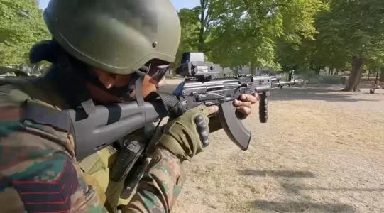 Shakti-2025 演习中配备 IRDE-BEL 全息瞄准镜的 印度制造IRRPL AK-203。