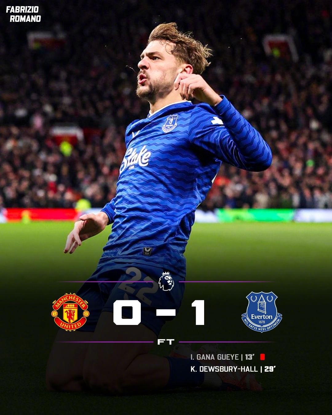 英超第12轮,曼联0-1不敌十人埃弗顿。整场比赛,曼联射门25次射正6次,埃弗顿只有2次射门,1次射正。埃弗顿在第10分钟科尔曼伤退,第13分钟盖耶掌掴队友基恩染红。曼联不但没进球反倒先丢一球,在剩下的比赛中也没能进球,最终主场失利。本场比赛的失利是曼联队史首次在英超主场比赛对手被罚下一人的情况下最终输球,此前他们曾46次在英超的比赛中坐镇老特拉福德球场获得过对手染红的优势,最终他们的战绩是36胜10平。