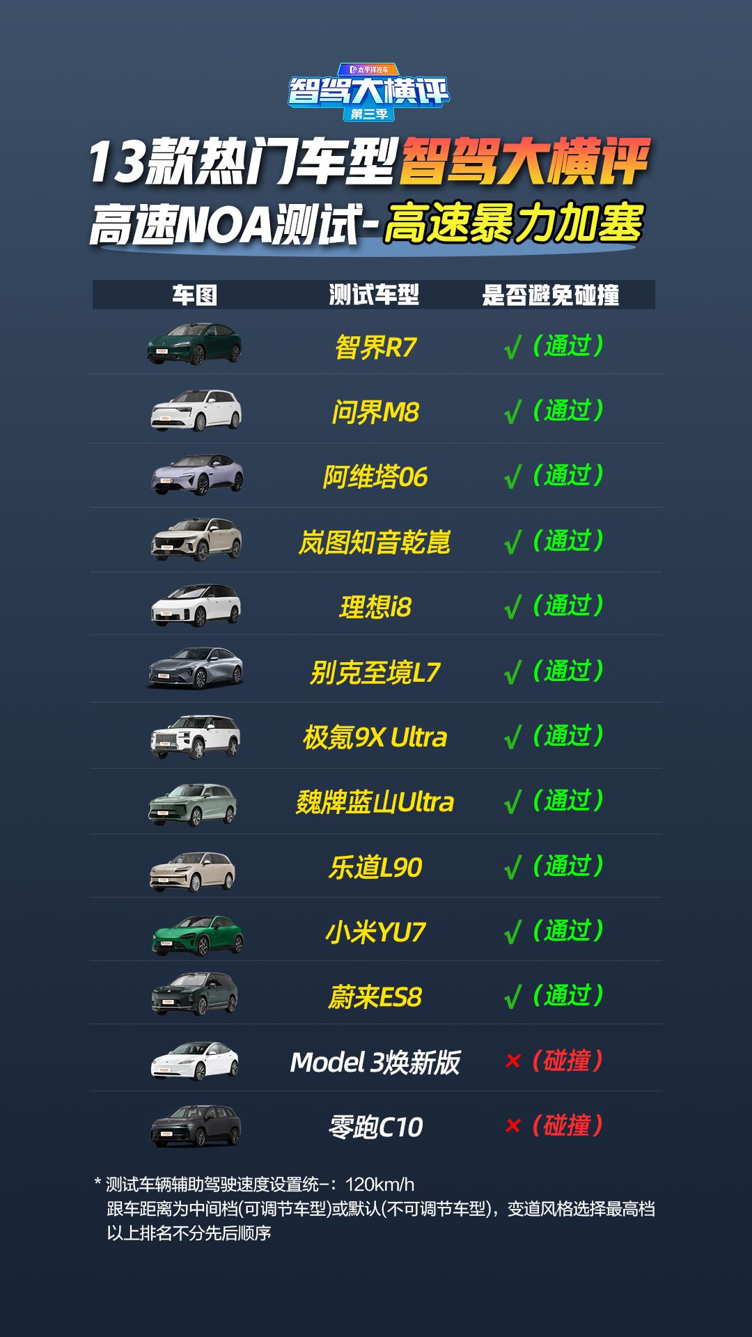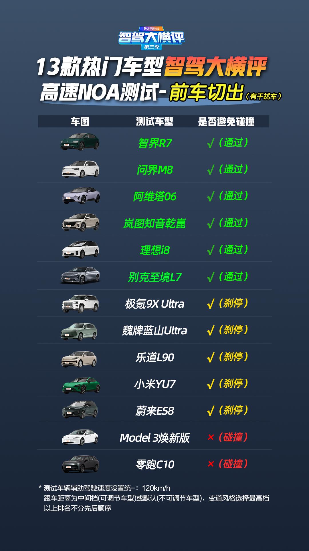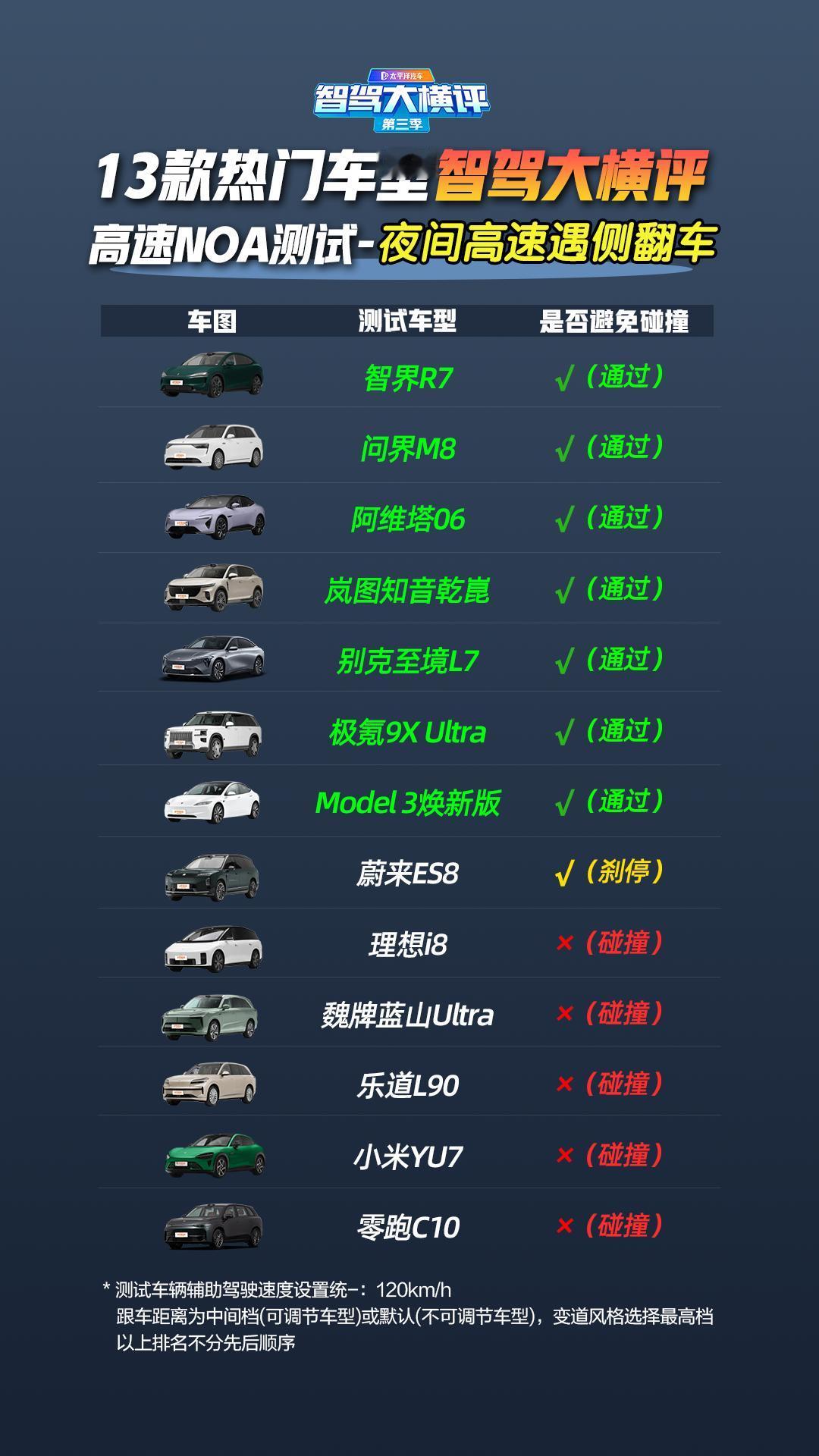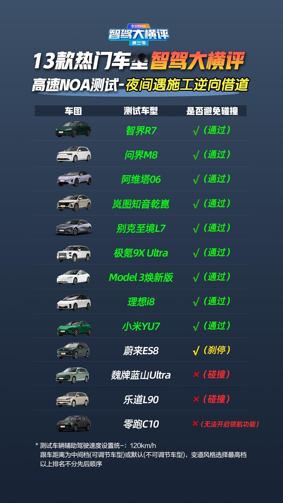 第三季智驾大横评 「高速辅助驾驶遇事故」各场景超详细成绩单! 1、封闭高速遇施工场景,华为系又交满分答案?但大多数都翻车了…… 2、前车消失,右侧有干扰车,理想i8 站起来了!小米YU7居然也稳稳刹停? 3、前方暴力加塞,这成绩有点出乎意料啊? 4、夜间高速遇侧翻车,华为系又拿捏?蔚来ES8 竟然…… 5、夜间遇施工逆向借道高难度测试,三位选手遗憾下场......