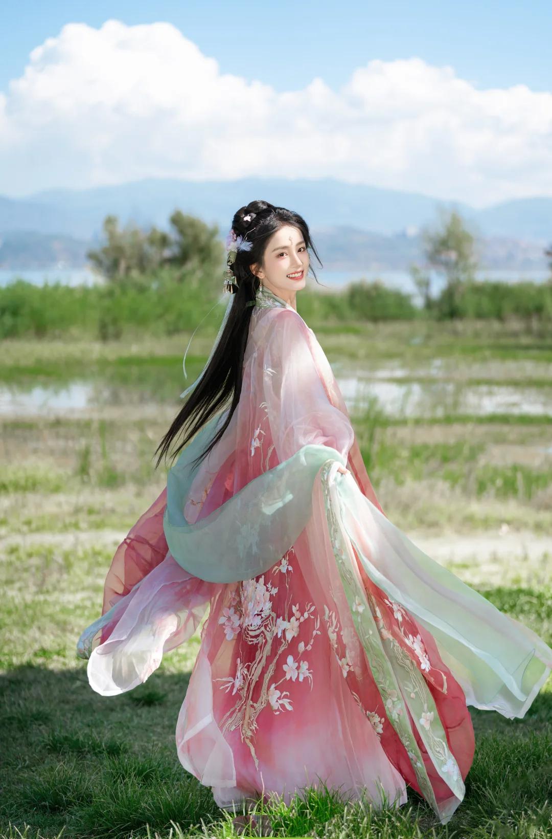 海天霞| 齐胸襦裙穿出东方微醺感🌺 🌸薄纱披帛+垂坠襦裙=仙女奔跑自由!