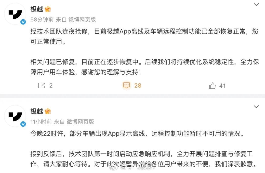 昨晚极越又断网了!车主们突然发现APP离线、远程控制全失灵。这已经是今年第二次了,上次是7月,这次官方连夜修到早上9点才恢复。说实话,这种连续掉线真的让人对智能汽车的可靠性打问号。
