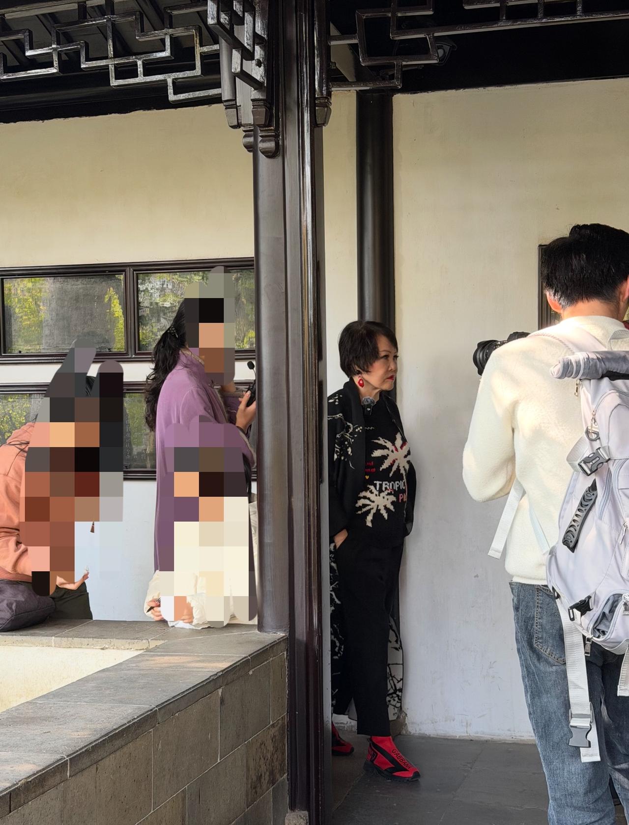 79岁的靳羽西现身苏州留园,真的是钱能养人,本人看上去要比实际年龄年轻20岁,就是表情一直很严肃,目测有点不好相处。 难得是靳羽西也没有刻意扮嫩,毛衣和外套都是黑色调,风格偏中式,看上去端庄大气有品位。 除了大红色的唇色之外,最抢眼的莫过于她脚上穿的红鞋,虽然有点欣赏不来,但感觉穿上应该蛮舒适。