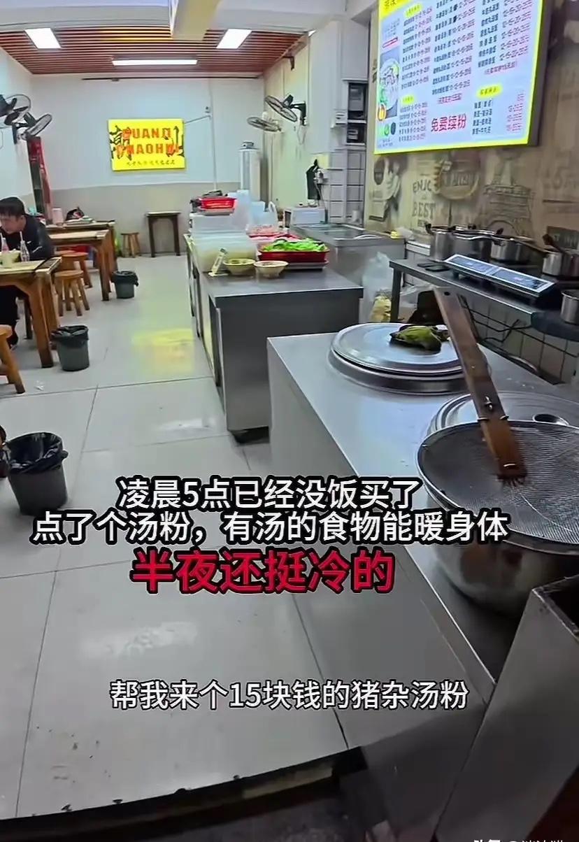 广州凌晨五点的桥底:一声哭泣背后,藏着成年人的无奈与善意 广州,凌晨五点,男子骑着电动车在回家的路上。在他路过一处天桥时,看到一个大叔睡在桥底并在哭泣。 男子觉得奇怪,心里想大叔是不是遇到了什么难事?于是,男子停下电动车,他问大叔怎么了?大叔说肚子饿得有点受不了。 天还没亮透,广州的街头还浸着夜的湿冷,路灯在远处晕开淡淡的光,照亮大叔蜷缩的身影。他身上裹着一件洗得发白的旧外套,头发凌乱,眼角还挂着未干的泪痕,听到男子的问话,只是低着头,声音沙哑得几乎听不清。男子心里一揪,他刚下班,工装外套上还沾着车间的油污,深知凌晨奔波的滋味——这座城市里,有人在写字楼里熬夜加班,有人在街头为生计奔波,而桥底的大叔,连一顿饱饭都成了奢望。 男子没多问,转身就往附近的城中村骑去。凌晨五点的城中村,已经有零星的早餐店亮起了灯,蒸笼里冒出的热气混着粥香,在冷风中格外诱人。他买了两笼肉包、一碗热粥,还特意加了个茶叶蛋,急匆匆往桥底赶。大叔接过热食时,双手都在发抖,拆开塑料袋就狼吞虎咽起来,粥水顺着嘴角往下淌,他也顾不上擦。 “慢点吃,不够我再去买。”男子在一旁轻声说。大叔嘴里塞满食物,含糊地应着,过了好一会儿才缓过来,打开了话匣子。他今年58岁,老家在湖南农村,儿子去年查出重病,家里的积蓄全花光了,还欠了不少债。为了挣钱给儿子治病,他瞒着家人偷偷来广州打工,原以为凭着一身力气能在工地找份活,可跑了十几家工地,工头们要么嫌他年纪大,要么怕他体力跟不上出意外,没人愿意收留。 身上带的钱早就花光了,住宿的小旅馆也住不起,他只能在桥底凑活了两晚。饿了就喝点自来水,实在扛不住了,才忍不住哭了出来。“我不想哭的,可肚子饿得发慌,想着儿子还在医院等着钱,我却连自己都顾不上,实在没忍住。”大叔说着,又红了眼眶,从口袋里掏出一张皱巴巴的照片,照片上的年轻人面色苍白,却笑得很灿烂。 男子看着照片,心里五味杂陈。他也是从农村出来打工的,家里有年迈的父母,深知“上有老下有小”的压力,更懂那种叫天天不应、叫地地不灵的无助。他摸了摸口袋,掏出刚发的半个月工资,一共三千块,这是他计划寄回家给父母买年货的钱。他犹豫了一下,还是把钱塞进大叔手里:“大叔,这点钱你先拿着,买点吃的,再找个便宜的地方住下,慢慢找活干。” 大叔愣住了,看着手里的钱,眼泪又掉了下来,一个劲地给男子磕头:“谢谢你,谢谢你小伙子,你真是好人啊!”男子赶紧扶起他:“别这样,谁还没个难处,能帮一把是一把。”他还拿出手机,帮大叔查了附近的救助站地址,又告诉大叔哪里有招临时工的劳务市场,叮嘱他注意安全。 等大叔情绪稳定下来,男子才骑着电动车继续往家赶。天已经渐渐亮了,街上的行人多了起来,早餐店的吆喝声、电动车的鸣笛声,构成了广州清晨最鲜活的画面。他想着桥底的大叔,心里既沉重又温暖——这座繁华的城市,从不缺光鲜亮丽的故事,却也藏着太多不为人知的艰辛。可正是这些不经意间的善意,像一束束微光,照亮了那些艰难的时刻。 近年来,随着就业市场竞争加剧,中老年务工人员的就业困境愈发明显。根据人社部门的数据显示,50岁以上的农民工就业难度逐年上升,他们大多缺乏专业技能,只能从事体力劳动,而随着行业规范化发展,不少用人单位对年龄和健康状况的要求越来越高,导致部分中老年务工人员陷入“求职无门”的境地。他们背井离乡,肩负着家庭的重担,却在城市的边缘挣扎,亟需社会的关注和帮扶。 其实,善意从来都不需要惊天动地。也许是给困境中的人递一份热饭,也许是伸出援手指一条明路,也许是一句温暖的安慰。这些看似微小的举动,却能给身处寒冬的人带来活下去的勇气和希望。我们每个人都可能遇到难处,今天你帮了别人,明天别人也可能帮到你。 城市的温度,从来不是由高楼大厦决定的,而是由人与人之间的善意堆砌而成。愿我们都能保持一份同理心,在别人需要的时候,多一份包容,多一份援手,让每个为生活奔波的人,都能感受到这座城市的温暖。 各位读者你们怎么看?欢迎在评论区讨论。