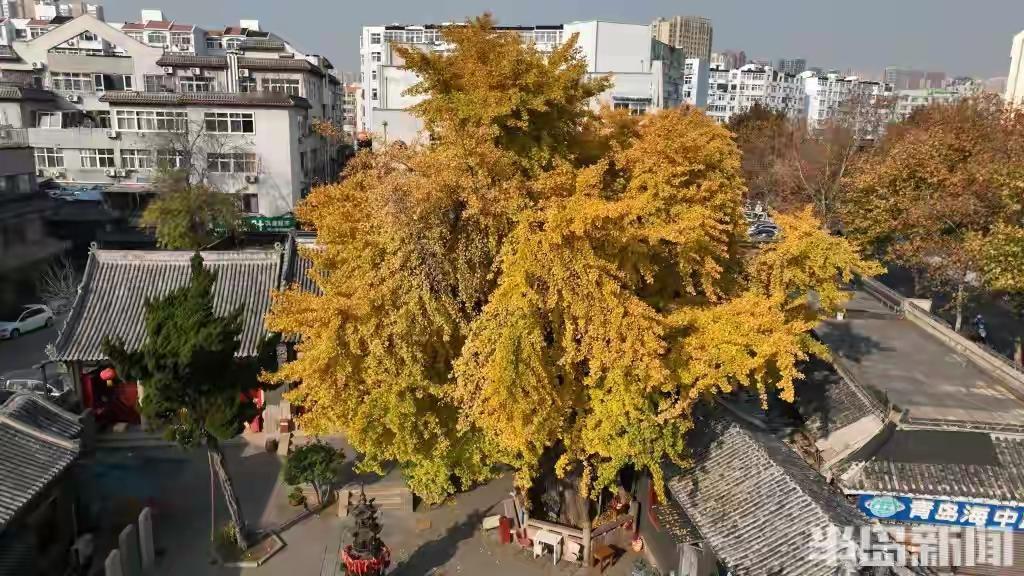 青岛市区惊现1300岁黄金巨伞!海云庵藏着一片千年银杏海,漫天金雨美到窒息 (