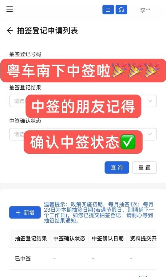 粤车南下中签后一定要记得确认中签✅ 粤车南下进市区中签车辆名单已公布,主包中签啦
