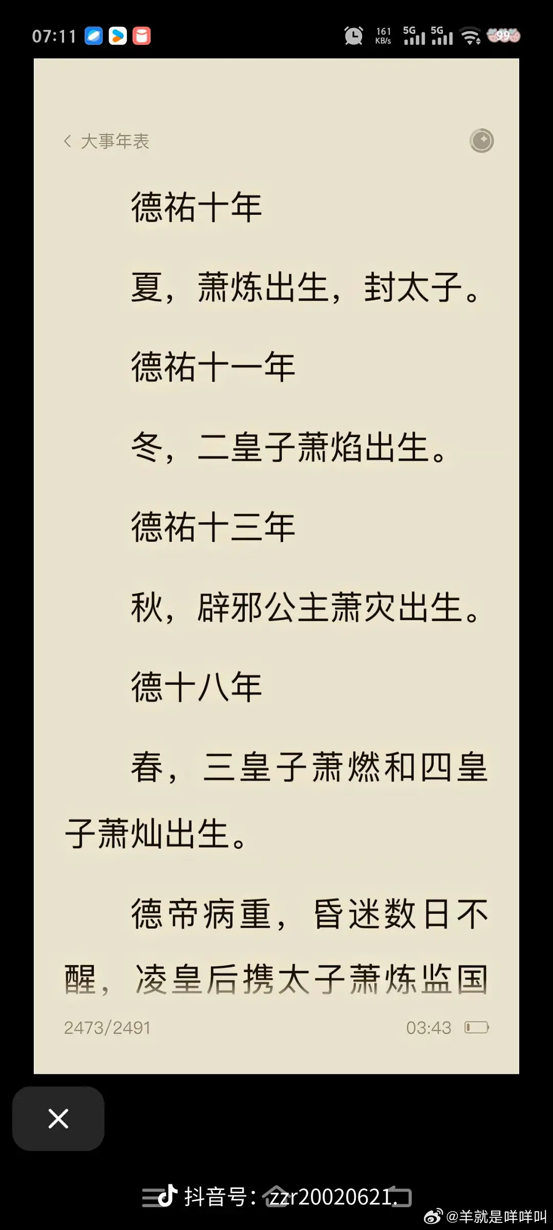 八年生五个…..女儿叫萧灾