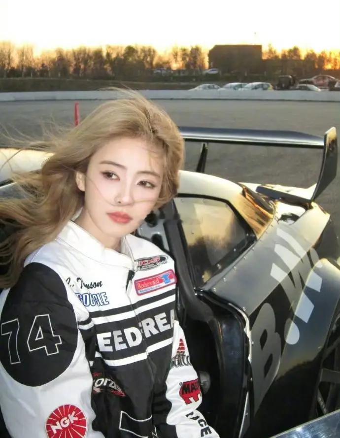 白鹿的赛车手妆造配一头金发,又酷又美,利落又亮眼,简直是为她量身打造,每一个眼神