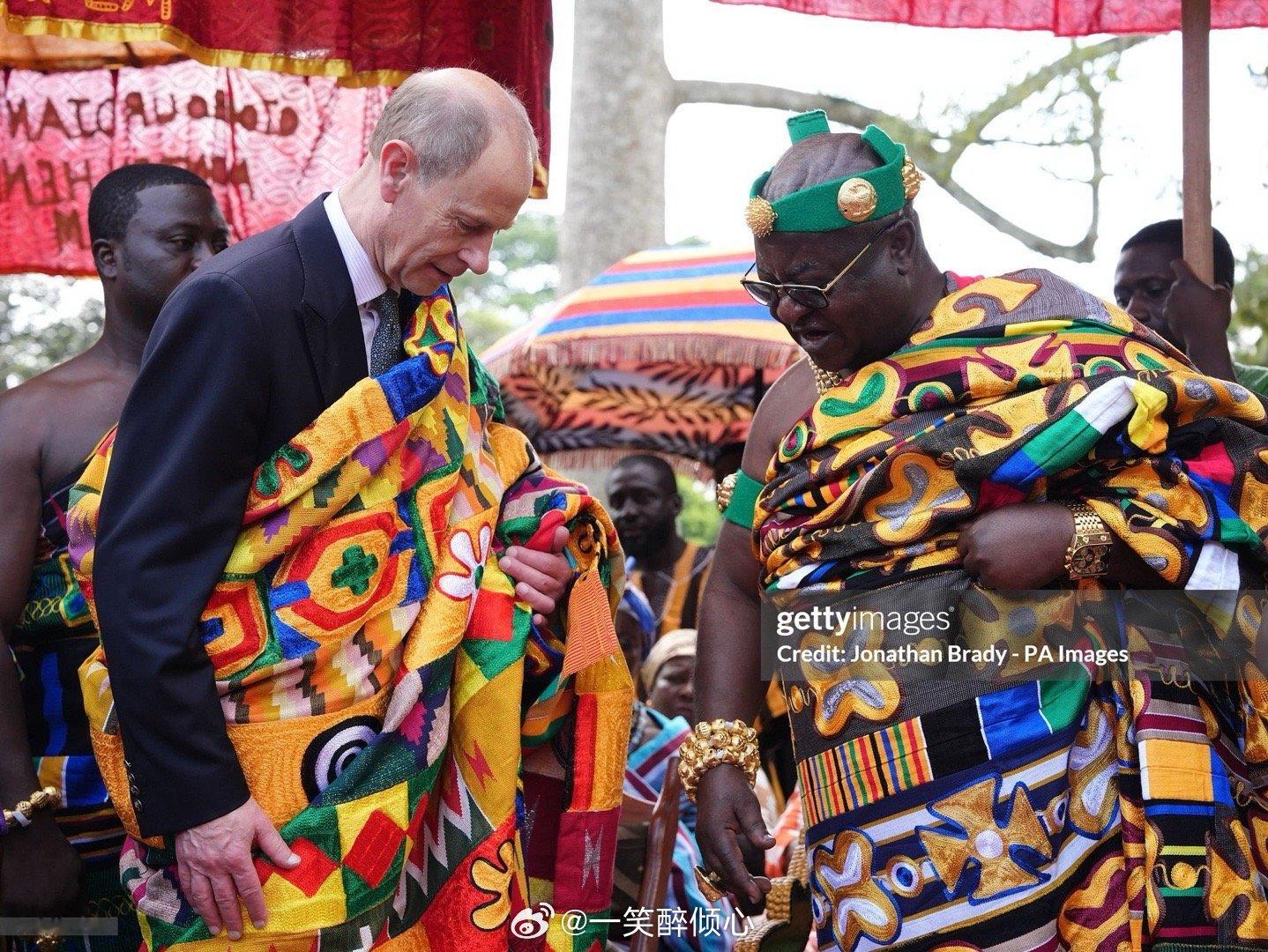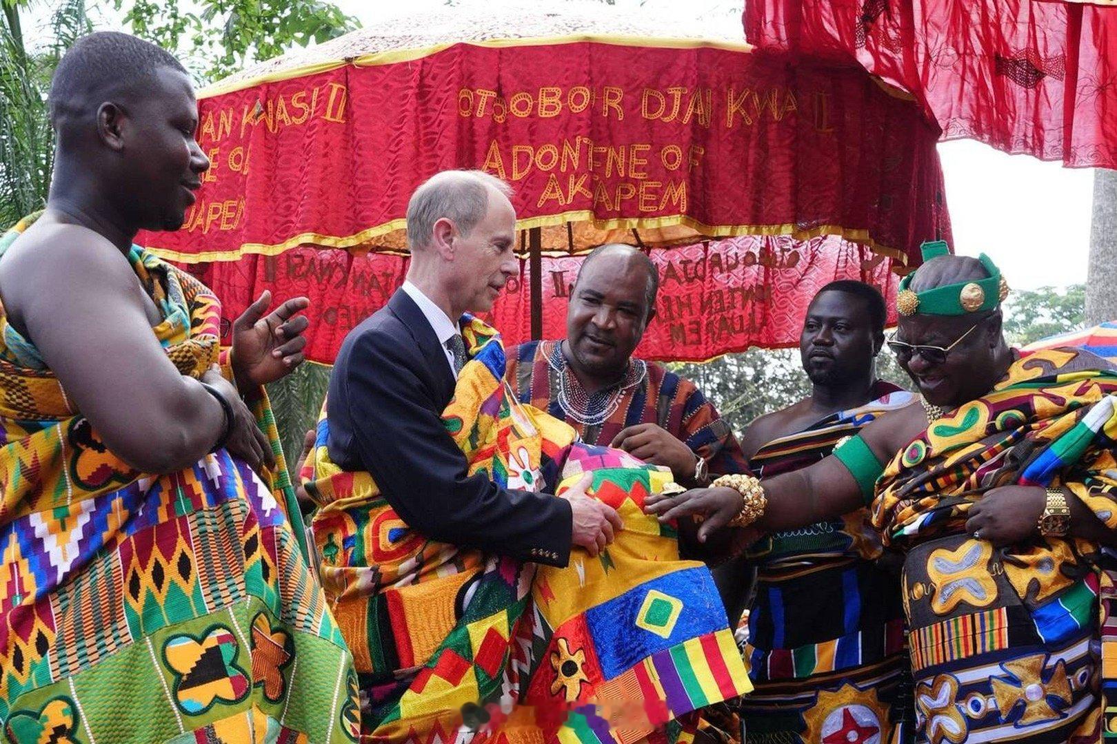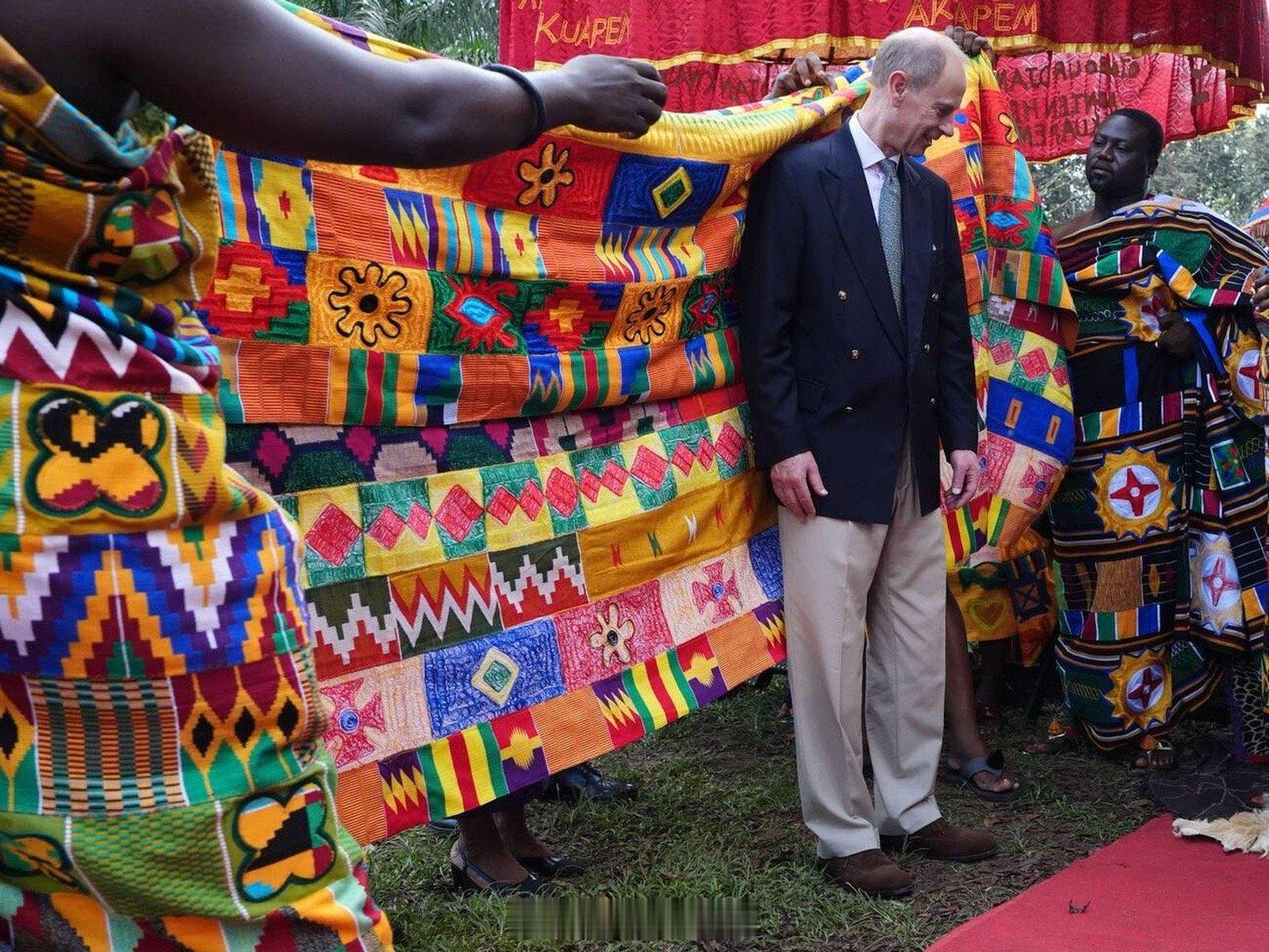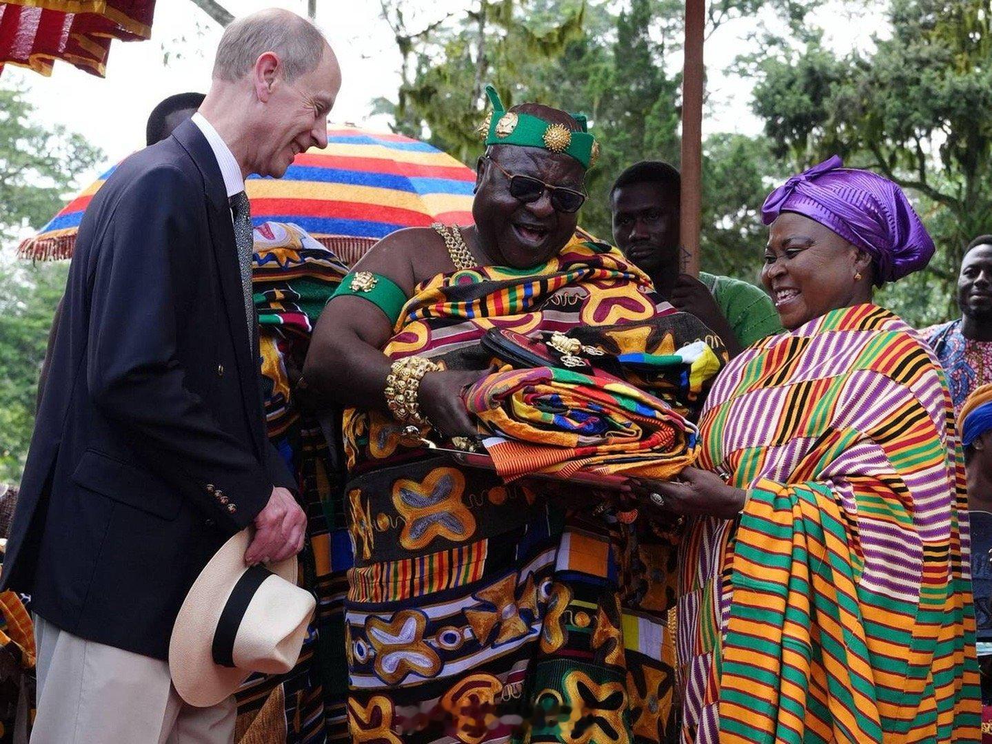 2025年11月24日,爱丁堡公爵爱德华王子在加纳加布里访问加布里植物园期间收到当地赠送的民族服装🇬🇭