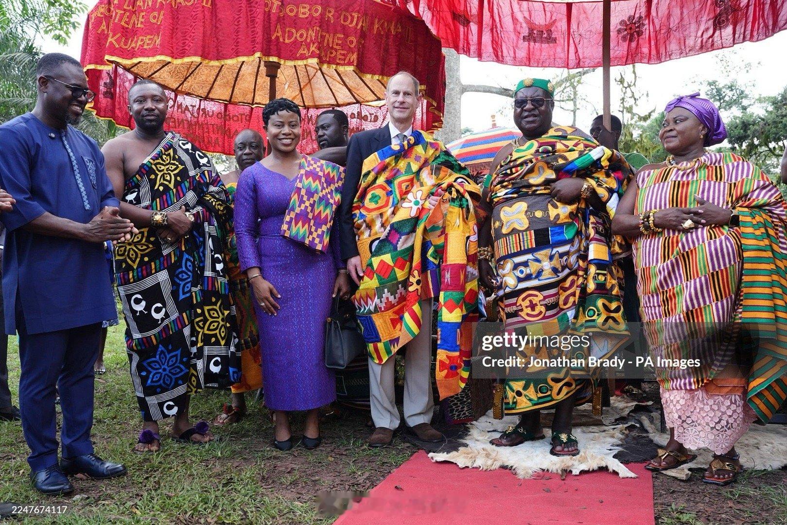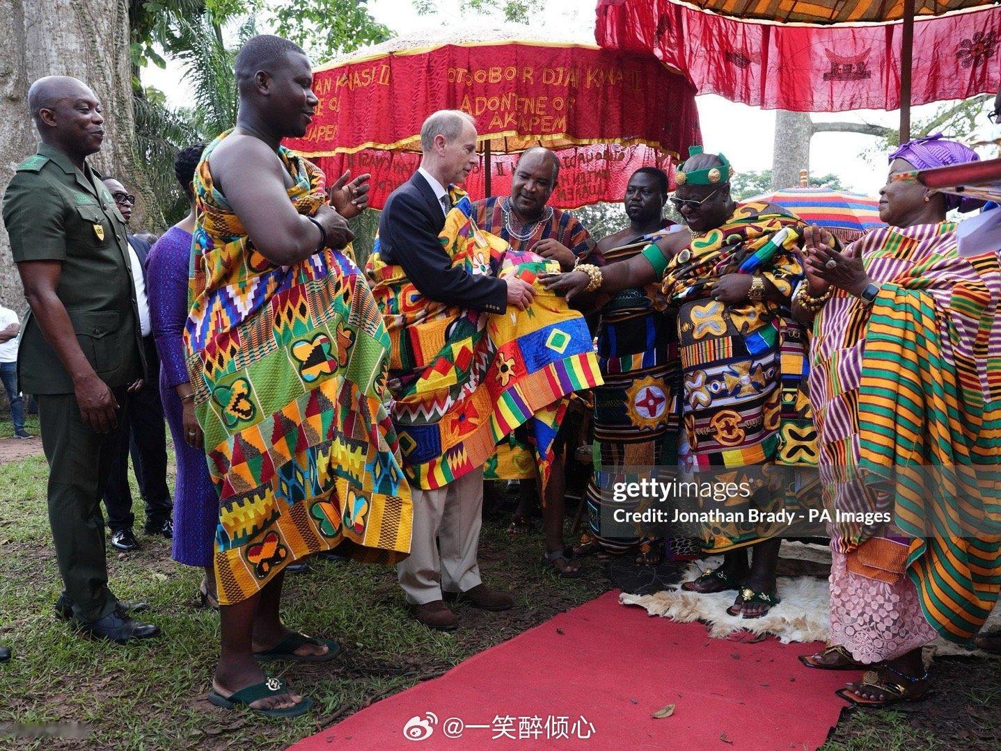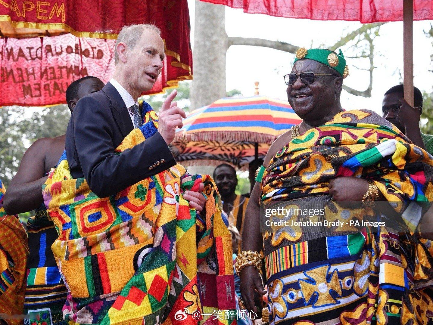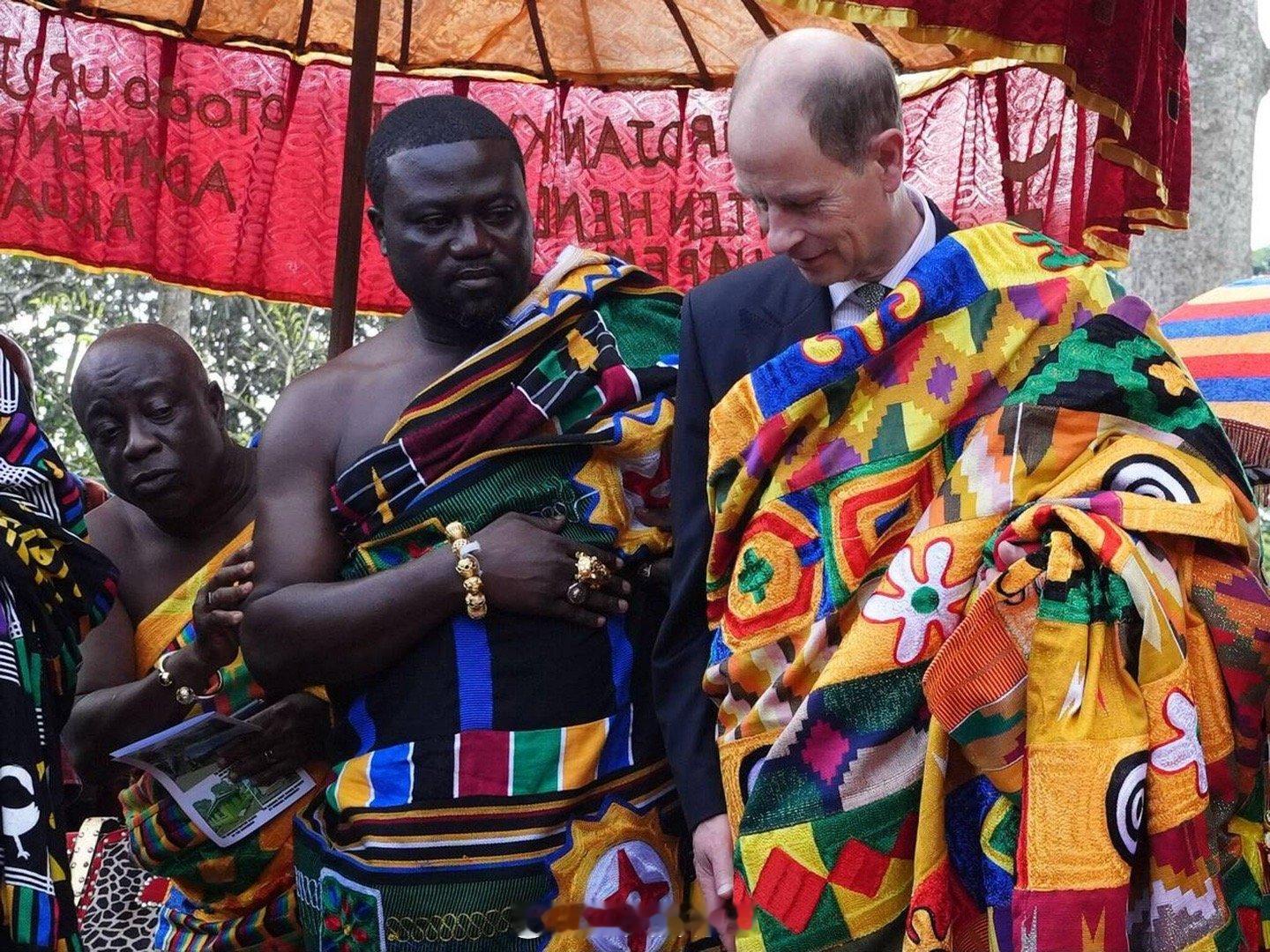 2025年11月24日,爱丁堡公爵爱德华王子在加纳加布里访问加布里植物园期间收到当地赠送的民族服装🇬🇭