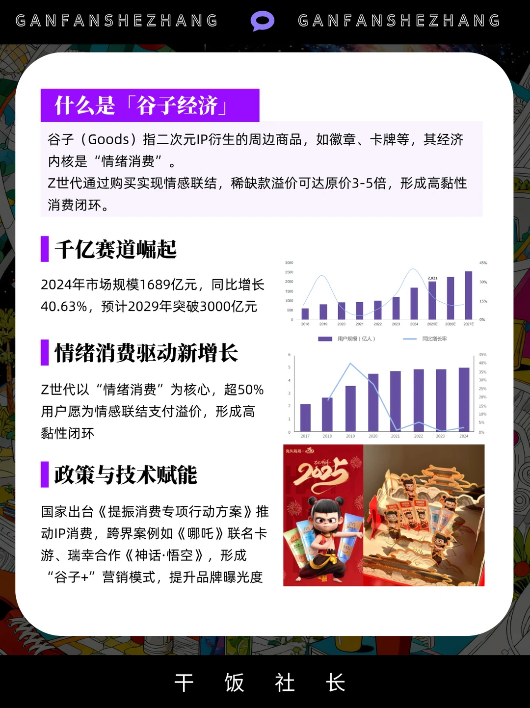 从二次元徽章、手办到三次元明星周边 “谷子” 已跳出小众圈层 2025年预计突破2000亿的消费市场 5.03亿泛二次元用户为其注入强劲活力 国谷与日谷分庭抗礼、吧唧卡牌垄断七成份额 拆卡直播、商场二次元专区等衍生玩法持续创新 痛文化更成品牌触达年轻群体的关键切口 本期将从五大维度拆解这个千亿赛道的核心逻辑