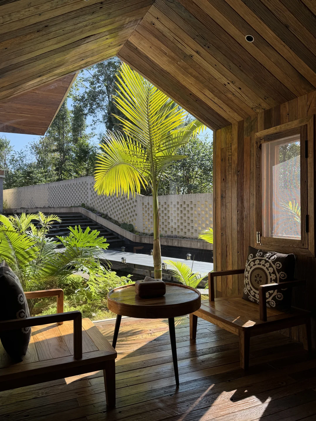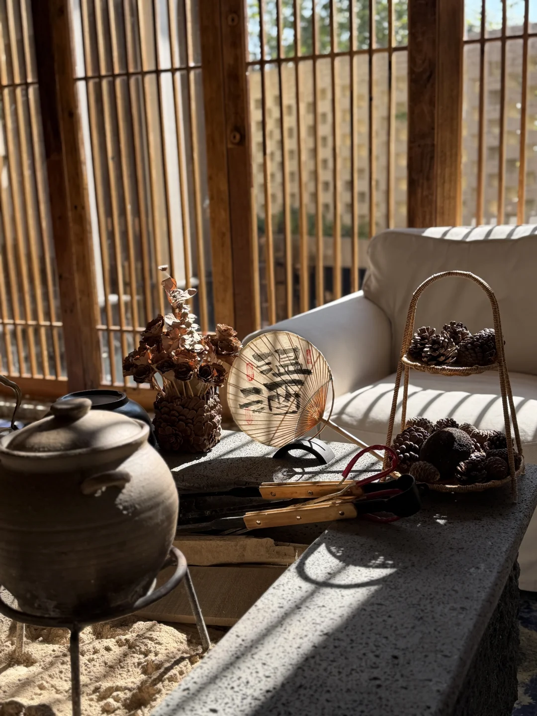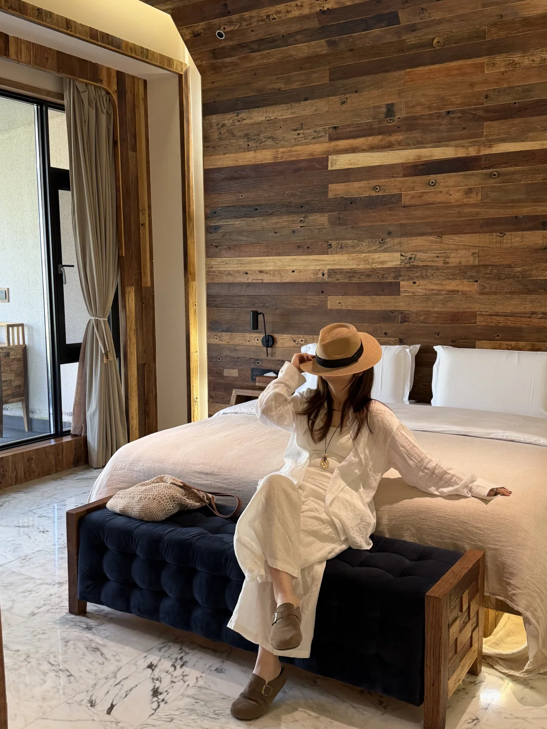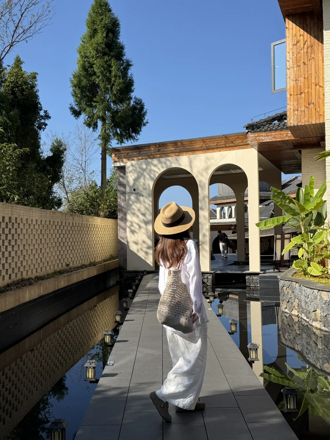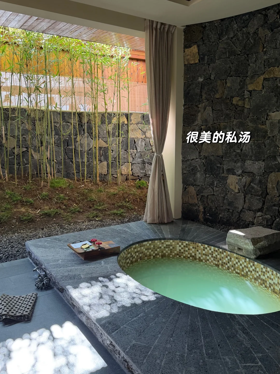这家酒店是云南的朋友推荐我们入住的 位置在距离市中心15分钟车程的高尔夫球场旁边 非常安静闲适 逃离城市计划必选 [萌萌哒R] 我超喜欢这家酒店的侘寂风设计 原木与藤编搭配 米棕色调 每个摆件都不多余 每间房都有私汤 ♨️ 酒店建筑的设计感也是美到失语 ~ 拱形门走廊搭配着两侧的水系 光影交错的建筑线条 景色真的一绝 度假感立马就来了 [萌萌哒R] 白天可以晒着太阳在室外焚香抄经 很净心净神 ~ 大堂有休息区可以在壁炉旁下午茶、围炉煮茶 特别有氛围感 🍵 一整个设计感爆棚! 服务也是特别到位 24小时管家服务 尽心尽力去满足客人的需求😌 是那种去了就后悔没多住几天的度假宝藏酒店