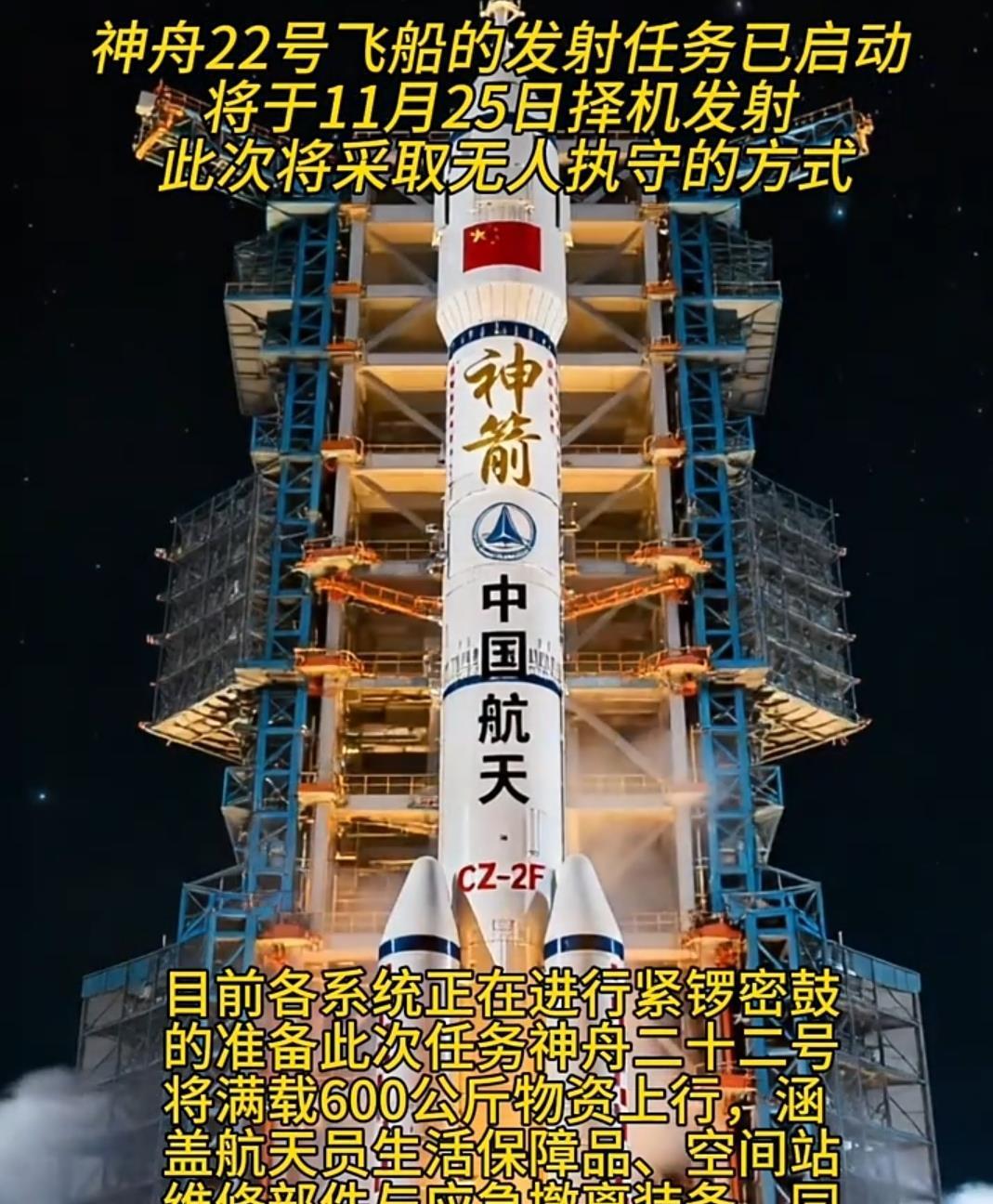 11月25日,据央视新闻报道,神舟22号飞船于北京时间2025年11月25日12
