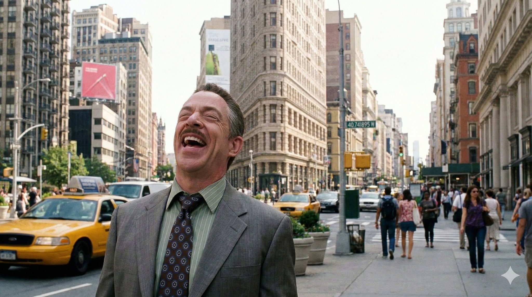 Google nano banana Pro新玩法把这个照片的人定位在地理坐标 纬度:40.741895 N,73.989308 W。格式:16:9 宽高比。然后就生成了这个人在那个位置的街景照片