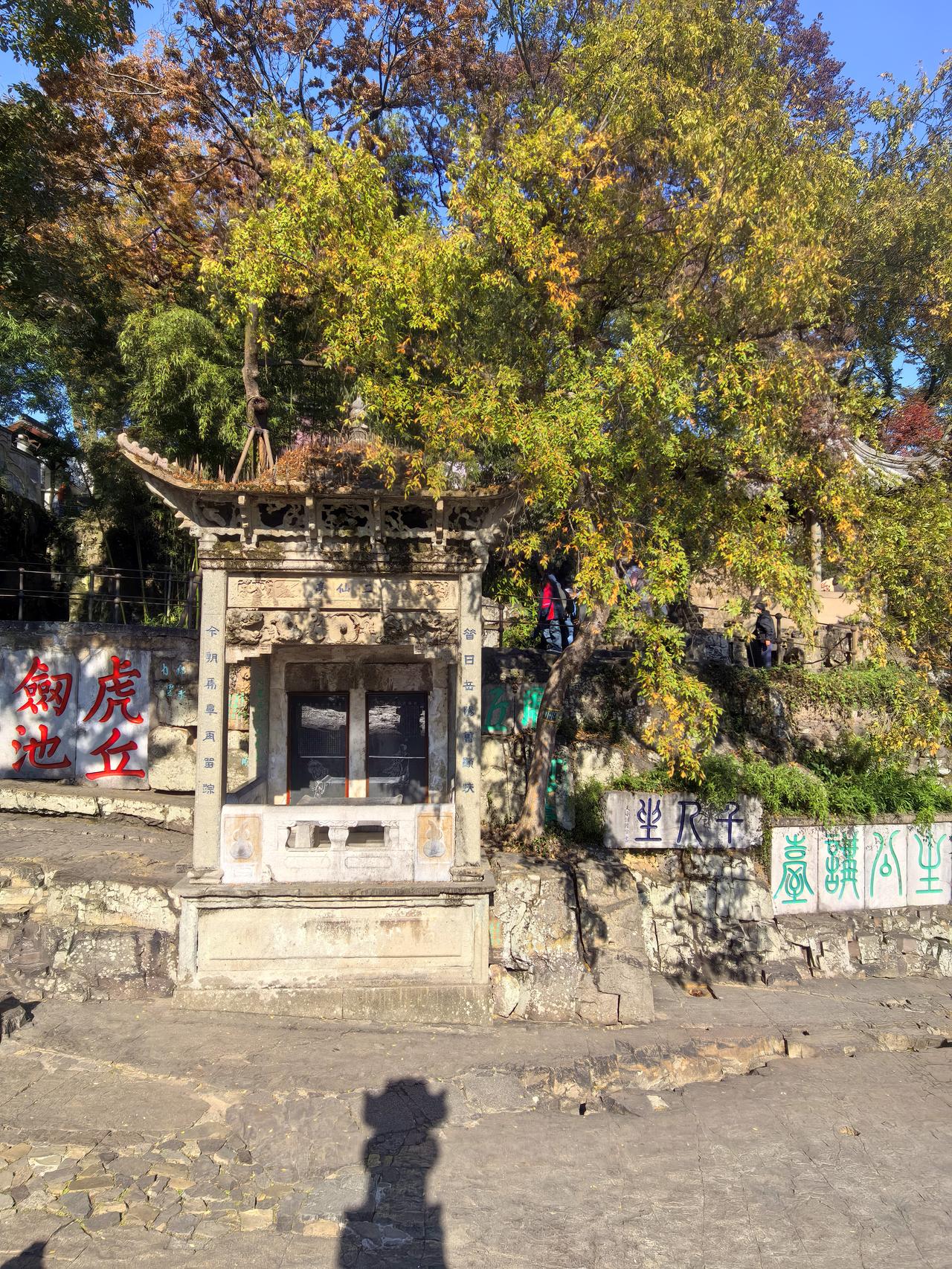 虎丘寻古。 午饭后的阳光漫过苏州城的黛瓦,街巷的喧嚣在身后渐次隐退,我们踏着秋阳铺就的碎金,奔赴苏州之行的第十二站——城西北的虎丘。这座被誉为“吴中第一名胜”的古丘,藏着吴越春秋的残章、千年时光的印记,正如苏轼所言“到苏州不游虎丘,是憾事也”,更有“过姑苏,不游虎丘,不谒闾丘,乃二欠事”的佳话,今日此行,便为沉心入古,在诗韵与古迹间,打捞那些被岁月尘封的故事。 山门入幽,初触古意染诗痕。入得山门,一路前行,青石板路被往来行人磨得温润,两侧古柏虬枝横斜,树皮上的沟壑如老者皱纹,刻着数百年风霜。秋日银杏染金,簌簌落在石阶上,与黛色围墙相映,恰如明人高启笔下“虎丘山翠近城阴,兰若凭高日下临”的景致。唐代大诗人白居易曾守苏州,对虎丘爱得深切,“一年十二度,五马来松关”便是他的写照,更主持开凿山塘河,构筑“七里山塘到虎丘”的诗意通途,让这方古丘得以更久地浸润在文人墨香中。 试剑石前,剑影寒光映千年。山门不远处,试剑石裂如斧劈,正中“试剑石”三字依稀可辨。相传吴王阖闾曾在此试干将、莫邪二剑,利刃出鞘便石破天惊;亦有传说秦始皇为寻阖闾藏剑,凿石未果而留此裂痕。宋代诗人杨备笔下“岩前片石犹中断,切玉如泥也不難”,恰如其分地描摹出宝剑的锋利与传说的雄奇。摩挲着石缝间的青苔,仿佛能看见当年吴王挥剑的霸气,听见秦始皇凿石的铿锵,而“石破天惊出匣时,中宵气共斗牛期”的诗句,更让这方奇石载满了剑器通灵的千古遐想。 剑池探幽,春秋秘事伴诗声。循径而上,水声潺潺入耳,便到了虎丘的核心秘境——剑池。石壁如削,池水清冽,倒映着两岸秋树与天光,传说中吴王阖闾的墓穴便藏于池底,“专诸”“鱼肠”等三千名剑随葬其间。池畔摩崖石刻林立,“剑池”二字相传为王羲之所书,晚唐皮日休曾咏“阖闾葬处白云堆,泉石清寒锁翠苔”,道尽此处的清幽与神秘。北宋陈尧佐更在诗中直指历史迷局:“惜哉吴王墓,秦帝欲开破。应笑埋金玉,千年贾余祸”,相传秦始皇与东吴孙权皆曾凿池求剑,却只留下这方深潭与无尽传说。南朝陈代张正见“剑隐绝星光”的诗句,更让剑池的藏剑之谜添了几分空灵与玄幻。 千人石上,千年回响入诗行。剑池旁的千人石平坦宽阔,可容千人同坐,既是吴王阖闾点将练兵之地,更是高僧生公讲经、顽石点头的传奇所在。石面上的凹痕依稀可见,那是岁月的印记,更是历史的见证。秋日阳光洒在石上,暖融融的,落叶在石间滚动,宋人文天祥“生公说法鬼神听,身后空堂夜不扃”的诗句在耳畔回响。苏轼亦在《虎丘寺》中写道:“幽幽生公堂,左右立顽矿”,描摹出顽石环伺的讲经场景。明代诗人程嘉燧更以“携将芦管新调曲,吹向生公旧讲台”,让千年后的我们仍能想见,当年梵音与诗声在此交织的盛景。 虎丘塔下,斜影千年映诗篇。行至丘顶,虎丘塔静静矗立,斜而不倒,虽历经千年,但仍在岁月中坚守。这座建于北宋的云岩寺塔,是江南现存最早的楼阁式砖塔,被誉为“中国的比萨斜塔”。站在“望苏台”远眺,苏州城秋景尽收眼底,青瓦连绵,河湖如带,恰如清人沈德潜所咏“塔势如倾倚碧空,吴门烟树有无中”。北宋王禹偁则在诗中追溯其渊源:“寺墙围著碧孱颜,曾是当年海涌山”,点明虎丘前身“海涌山”的传说。塔檐铜铃在风中叮当作响,苏轼“云水丽千顷”的诗句,更让塔旁“千顷云”景点得名,文脉与景致在此完美交融。 憨憨泉边,清甘一味入诗怀。下山途中,路过憨憨泉,相传南朝梁代高僧憨憨在此凿泉,泉水清冽甘醇,终年不涸。泉边石壁上“憨憨泉”三字古朴可爱,明代唐寅曾在此品泉题诗:“憨憨泉下井,皎皎石间流。洗耳听天籁,清心卧石楼”。而白居易更以“酒熟凭花劝,诗成倩鸟吟”,描摹出以泉煮酒、以诗会友的雅事。苏轼游历虎丘时,常与寺中高僧共品憨憨泉水烹茶,那份清甘与禅意,尽藏在“我来属无事,暖日相与永”的悠然心境中。 日光西斜时,我们准备离开。回望虎丘,古塔在暮色中若隐若现,银杏叶在余晖中更显璀璨,那些碑刻、石阶、泉池,都浸在历代诗人的诗句里,沉淀出更浓的古意。这场虎丘寻古之旅,寻到的何止是吴越春秋的遗迹、宋元明清的印记,更是在诗句与古迹的交融中,触摸到了虎丘的文化灵魂——它是白居易“长留一道春”的治水功绩,是苏轼“碧玉壶”般的仙境赞誉,是生公讲经的禅意传奇,是吴王藏剑的春秋豪情。这些藏在虎丘秋光里的诗与史,刻在了苏州之行的记忆深处,愈品愈浓,愈忆愈香。原创作品 随手拍吴中第一山虎丘 苏州地标虎丘 寻古虎丘