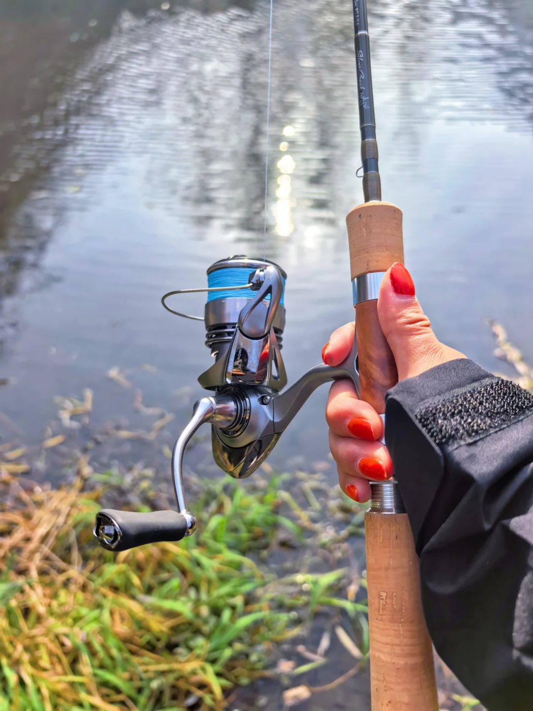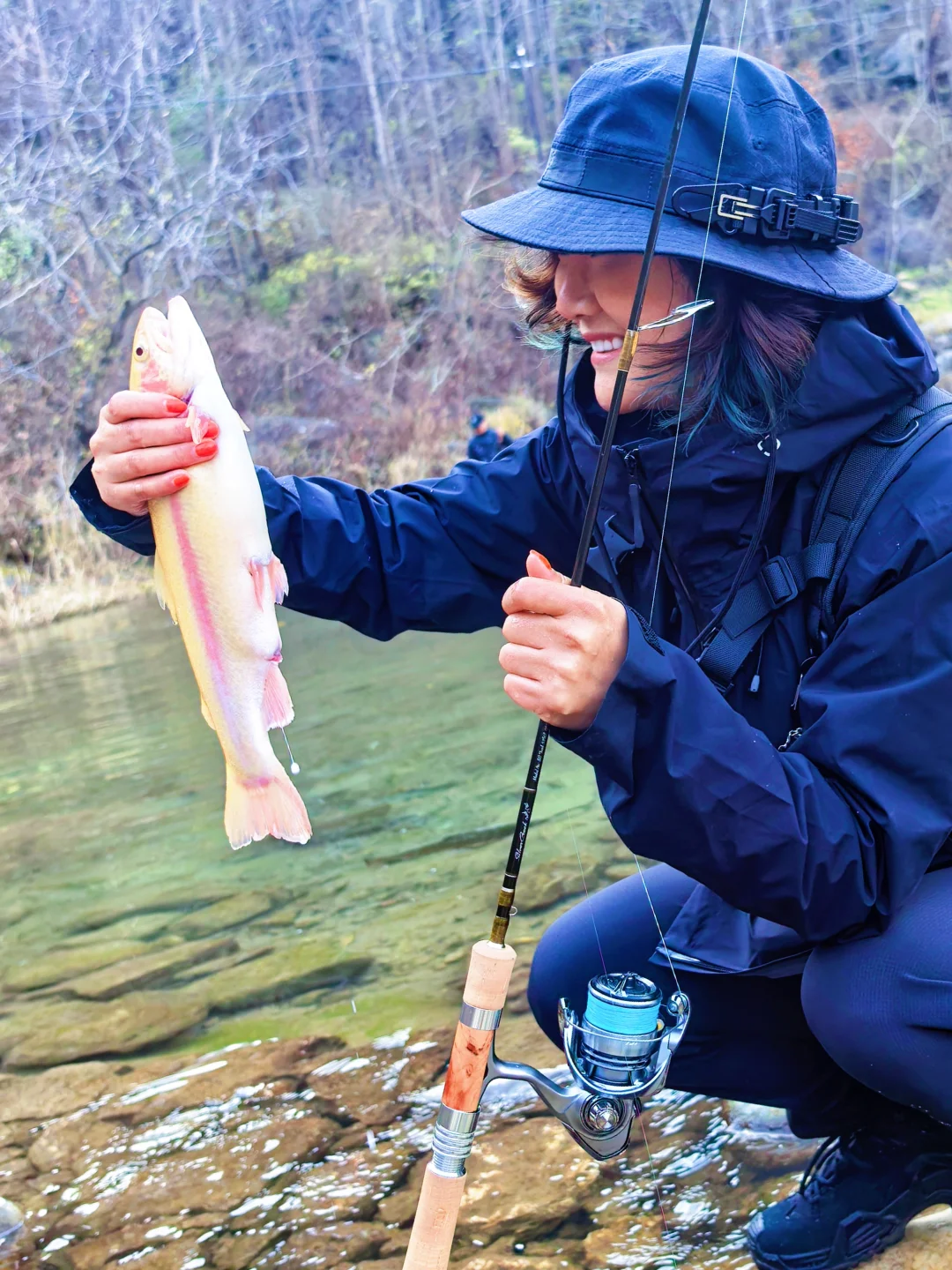 路亚竿:UL调性的竿子,手感灵敏,能清晰感知鳟鱼的每一次试探