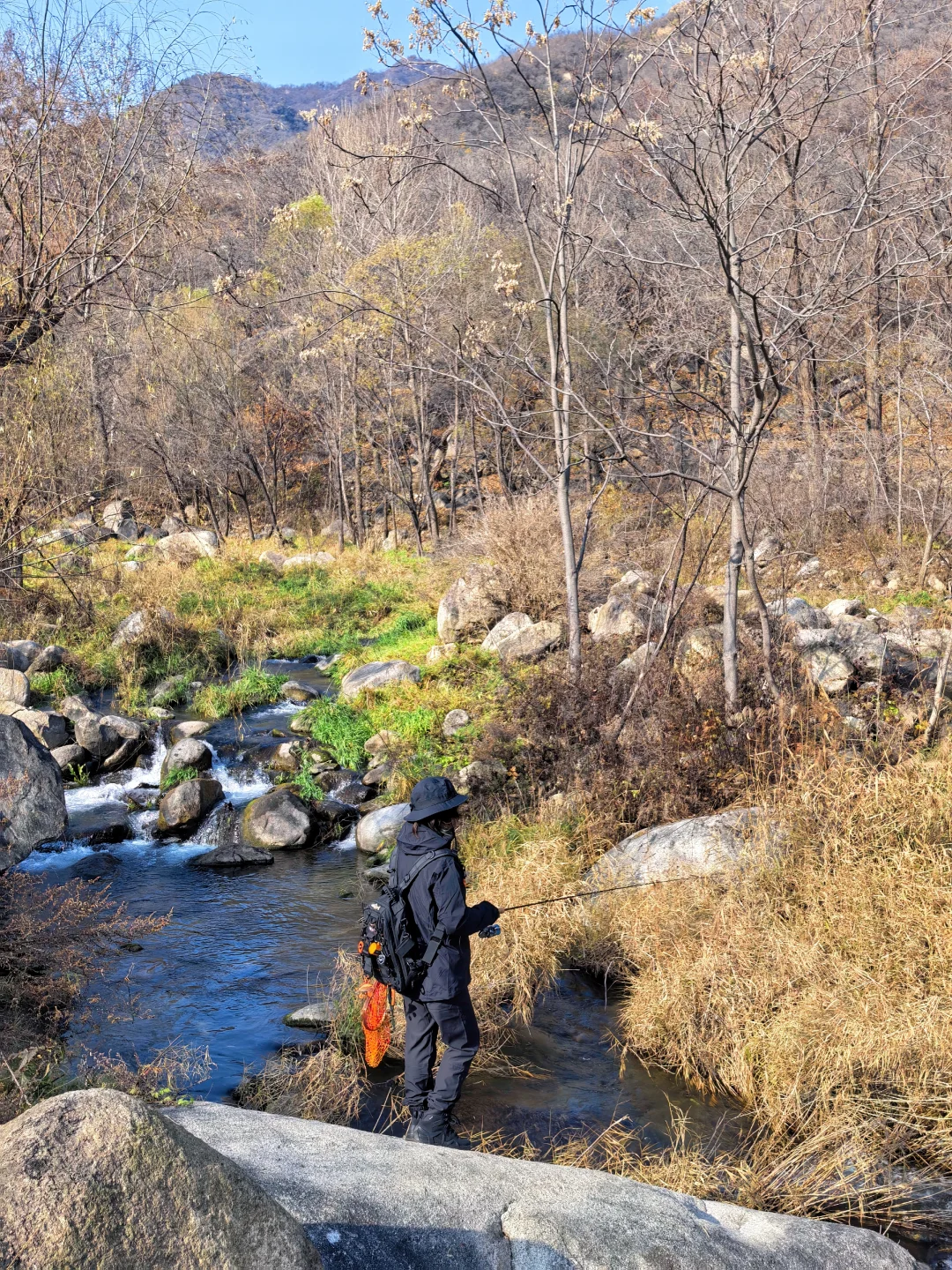 在北京怀柔的范崎路寻找钓点,看到有人在这边钓到了山女鳟,一直心心念念,然而一整天,只留下了我在山里“空军”的倔强。
