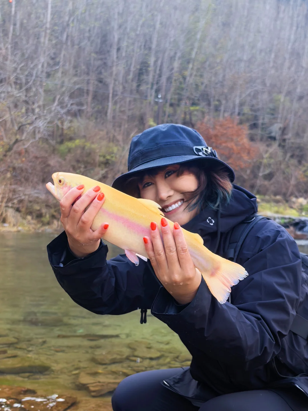 ❌ 鳟鱼是冷水鱼,如要拍照建议先湿手,手冰了再去触碰鱼,保护鱼获守规矩