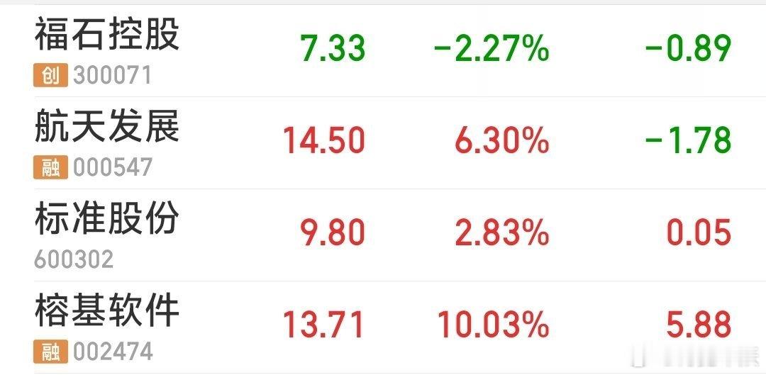 今日手中四牛:标准股份,榕基软件,航天发展,福石控股。其它己出局。