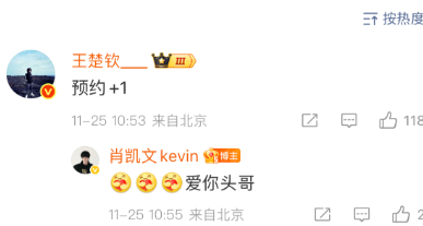 【】11月25日,国乒教练员肖战 的儿子肖凯文 发布主演的影视作品《它在掌心呼啸而过》预告片,随后包括王楚钦 、 在内的国乒运动在在其评论区下留言,称“预约+1”。