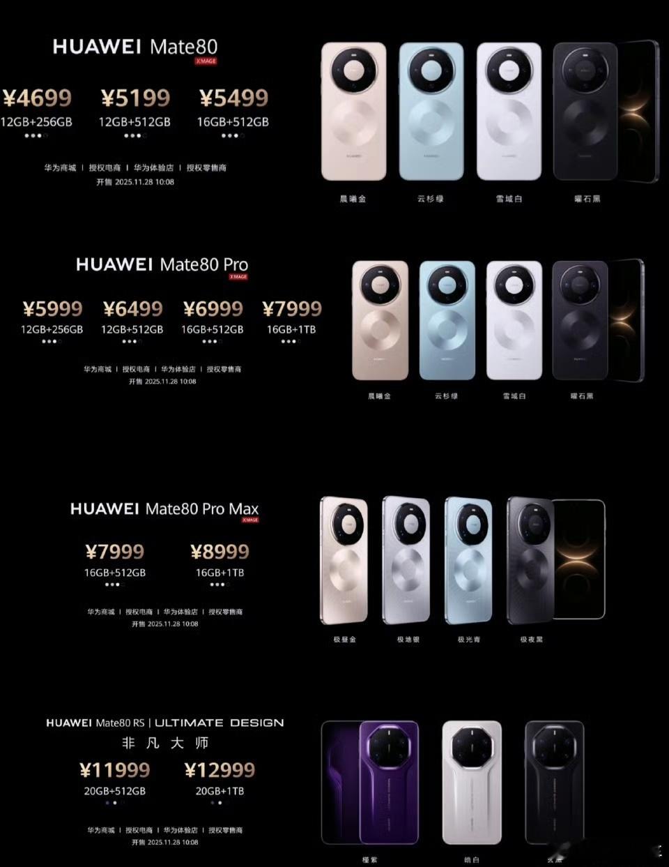 华为Mate80这价格太惊喜了!Mate80:4699元起Mate80Pro:5999元起Mate80ProMax:7999元起Mate80RS非凡大师:11999元起 各版本定价都挺有诚意啊这个价格大家觉得怎么样?