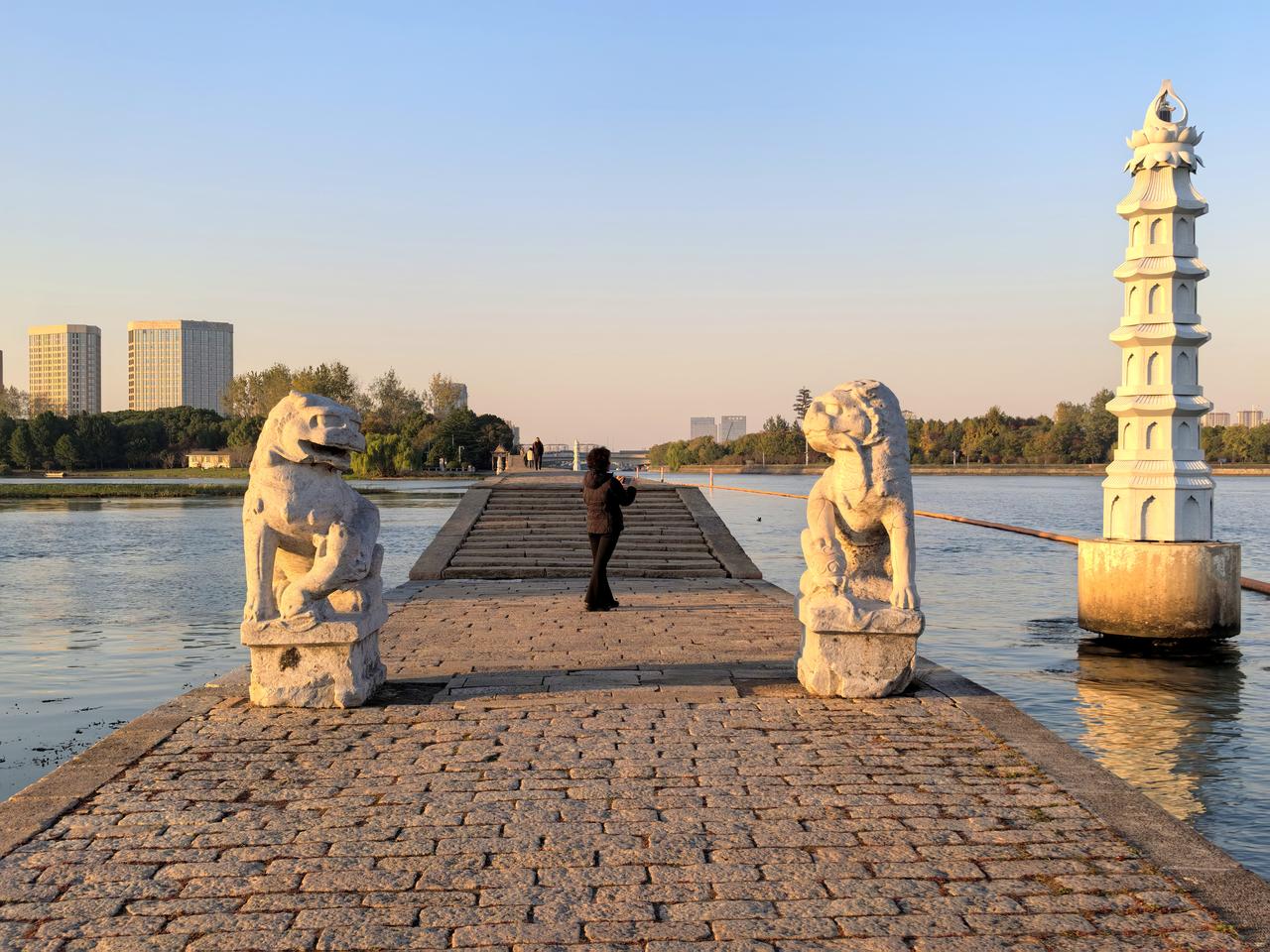 长桥卧波映运河,唐韵诗魂伴秋光——宝带桥漫记 告别虎丘,剑池的幽凉与塔影的苍茫仍在眼底流转,登上地铁2号线,我们很快便到达了苏州之行的第十三站——宝带桥。这是一个小众景点,来时只寥寥数人。静卧在苏州市吴中区大运河畔的宝带桥始建于唐元和年间。千余载光阴流过,它如一条温润的玉带,一头系着盛唐的风烟,一头连着秋日的清澄,不仅见证着运河的晨昏,更引得历代文人墨客为其挥毫泼墨,留下无数传世诗篇。 宝带桥的名字,藏着一段千古佳话。相传唐元和年间,刺史王仲舒为解运河通航之困,捐出自己珍藏的宝带募资建桥,桥成后形似宝带横卧碧波,便得名“宝带桥”。明代书法家王宠曾赋诗赞其美名与气势:“春水桃花色,星桥宝带名。鲸吞山岛动,虹卧五湖平”,寥寥数语,既点出桥名的雅致,又勾勒出它如彩虹卧波、吞吐湖山的雄姿。如今踏上桥面,青石板被千年步履磨得温润发亮,缝隙里嵌着深褐的苔痕,每一步都像在与历史对话。桥身由五十三孔石拱连贯而成,孔径由中间向两侧递减,弧度舒展流畅,远远望去,恰如明代文人王鏳笔下“碧虹跨平湖,远岫参差映。门影入波圆,五十三明镜”的景致,五十三个桥孔倒映水中,如串珠般连贯,妙趣横生。桥墩呈船形,迎水的一面削成尖棱,恰好分流运河水势,这般因地制宜的营造智慧,让这座古桥历经千年洪水冲刷仍屹立不倒。 秋日的宝带桥,最是得景,也最能勾起诗人的才情。天朗气清时,阳光斜斜铺在桥身,米白色的石拱在蓝天下舒展,元代僧人释善住曾题诗描绘此景:“白鹭下秋色,苍龙浮夕阳”,白鹭掠过低空,夕阳为长桥镀上金边,恰似苍龙浮于水面,意境悠远。河面上偶有货船缓缓驶过,水波荡漾间,桥影与船帆叠在一起,分不清是桥在水中,还是水在桥上。桥畔的芦苇已染成浅黄,风过处,芦花轻舞,与桥边野菊相映,添了几分清寂。此时再读乾隆皇帝《过宝带桥有咏》中“金阊清晓放舟行,宝带春风波漾轻”的诗句,即便不是春日,也能从秋波的澄澈中,体会到舟行桥畔的悠然意趣。 宝带桥最负盛名的,莫过于“串月”奇观。每逢中秋之夜,明月当空,五十三孔桥洞各映一月,连成一串,成为吴中盛景。清代沈朝初在《忆江南》中专门吟咏此景:“苏州好,串月看长桥。桥畔重重湖面阔,月光片片桂轮高。此夜爱吹箫”,生动描绘出中秋夜人们聚于桥畔,赏月听箫的雅致场景。漫步桥间,指尖抚过冰凉的石栏,触感粗糙却带着岁月的温度。那些嵌入石缝的苔痕,是时光的印记;那些被磨平的石板,是人间的烟火。历代文人的诗句,便如这些印记一般,为古桥增添了厚重的文化底蕴——它见过盛唐的繁华,听过宋元的桨声,看过明清的帆影,也映过无数诗人眼中的月、笔下的景。 夕阳西下时,余晖为宝带桥镀上一层暖色,桥影被拉得悠长,与运河水交融成一片温柔的橙红。耳畔仿佛还回荡着“涛声当夜起,并入榜歌长”的诗意,古桥、运河、诗韵与秋光交织在一起,让人沉醉。告别这座千年古桥,它的雄奇与雅致,它的历史与诗魂,已悄然嵌进旅程的扉页,成为江南之行里,一段关于时光、流水与笔墨的温柔记忆。原创作品 苏州京杭大运河 大运河现存最长石桥 宝带桥的由来 宝带桥漫步 大运河寻古