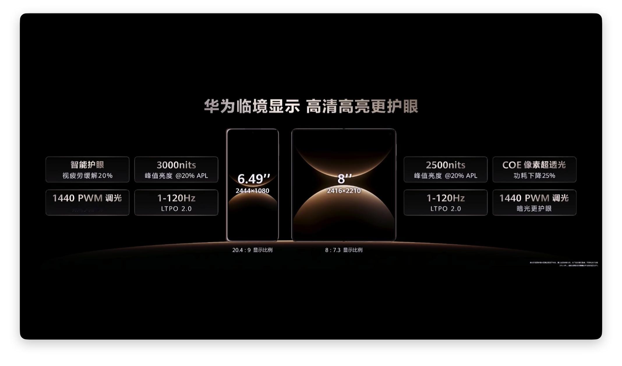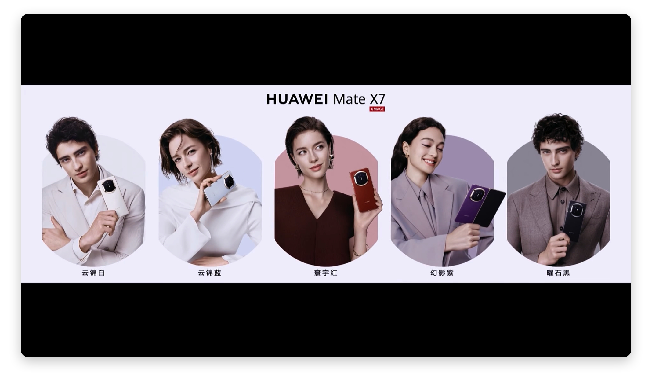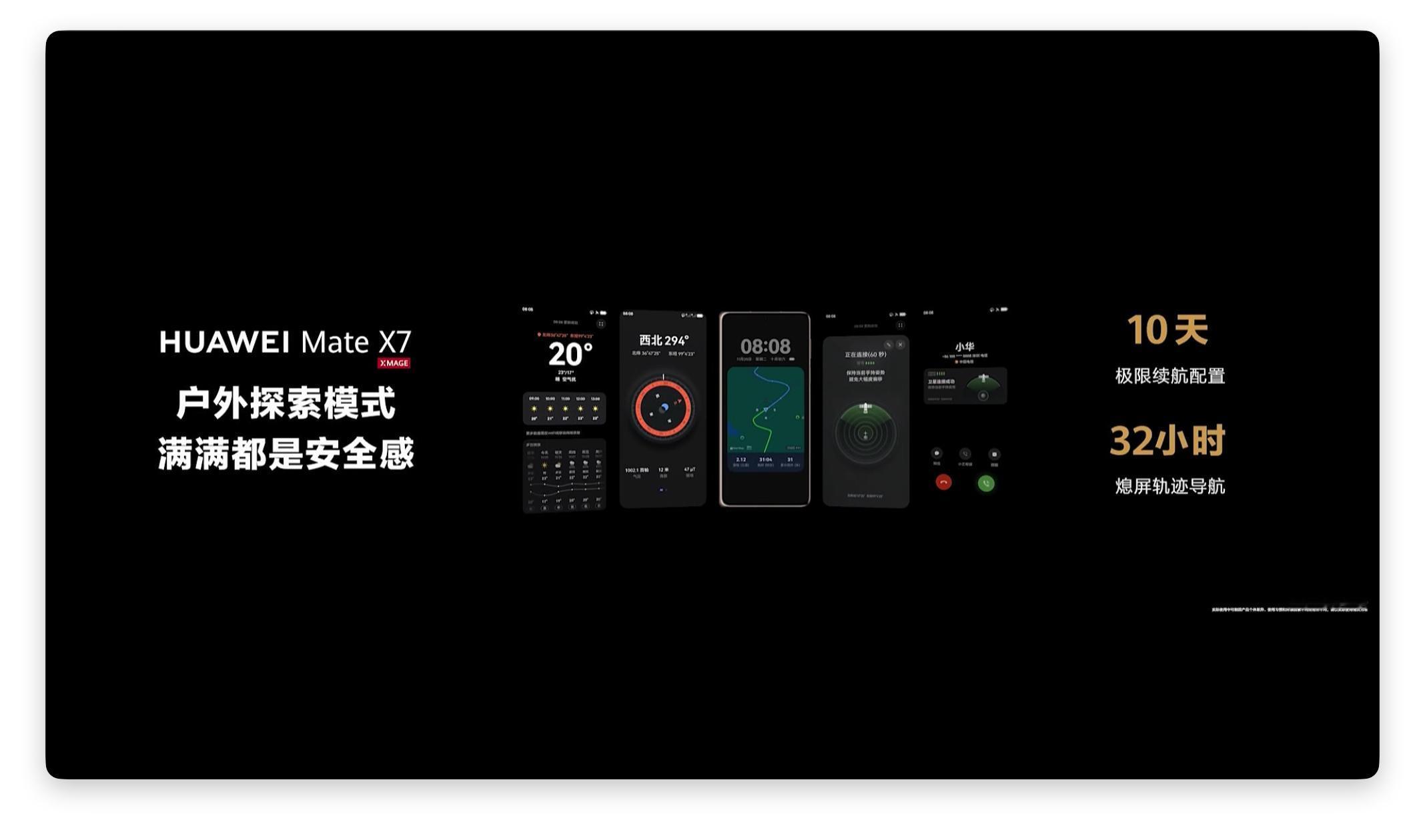 华为Mate X7 来啦!拥有5款配色,采用6.49英寸OLED外屏,2444x1080,3000nit峰值亮度;8英寸OLED内屏,2416x2210,2500nit峰值亮度,支持120Hz高刷,1440Hz 高频PWM调光技术。整机性能提升42%+,5600mAh大电池,支持66W有线快充,50W无线快充,支持Mate70系列同款户外探索模式,支持10天极限续航,32小时熄屏轨迹导航。影像方面,采用第二代红枫原色摄像头,50MP RYYB超高动态主摄,1/1.28英寸传感器 17.5EV超高动态;50MP RYYB F2.2 潜望长焦,3.5x光学长焦,7x光学品质变焦;40MP RYYB F2.2 超广角,这个影像素质,可以说直接在大折叠里领跑了。