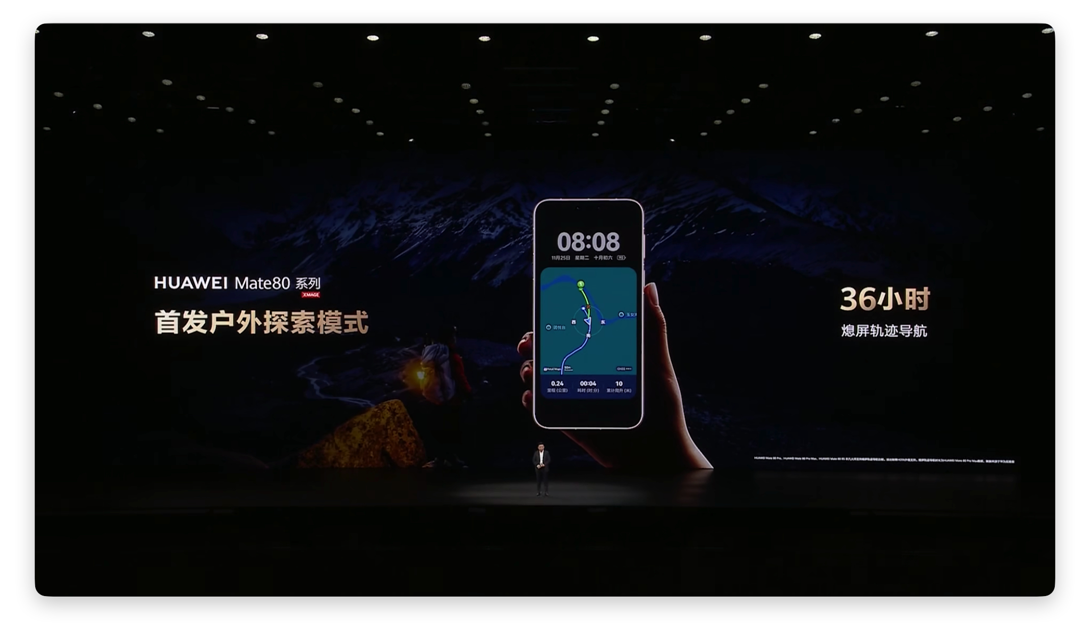 华为Mate80 系列还首发了户外探索模式,可以实现最长36小时的熄屏轨迹导航,更是是支持最长14天的极限续航,差不多半个月了,这个对于户外探险或者喜欢徒步、登山的小伙伴来讲,真的很实用啊,再搭配上卫星通信,简直了!