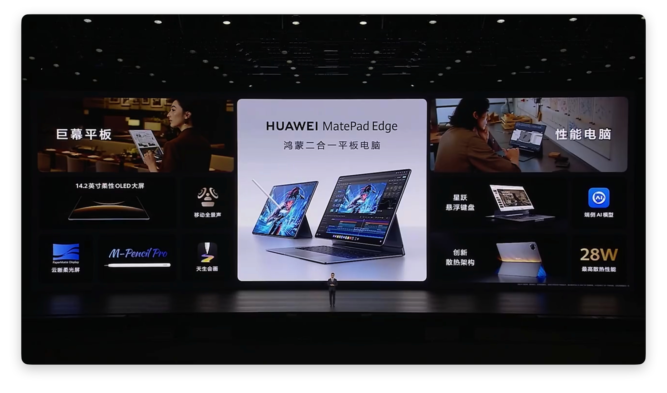 华为 MatePad Edge 来啦!采用14.2寸大屏,4.1mm 四边等距超窄边框,这么大的屏幕用来玩游戏真的不要太爽吧!这种尺寸玩《和平精英》,左右视野一下就拉开了,远处有没有人影动一下都更容易注意到,不用一直盯着小角落找信息;《原神》的画面在 3.1K 加柔光屏上也挺加分,光影、纹理这些细节更清楚,亮光下也不反光,盯久了眼睛不会累。性能这次也挺能打的,双风扇、大面积 VC、微泵液冷那套结构把 28W 的性能压得住,高画质跑一段时间也不怎么掉帧,拿在手里不会越玩越烫。再加上 120Hz,高速转向和技能释放都更跟手。它还支持键鼠映射,玩射击类的时候瞄准会明显更稳,屏幕也不会被手指挡来挡去,平板的体验一下变得更像在轻薄本上玩。平板+PC 双模式也做得挺完整,切换几种方式都算顺,文件系统是共享的,工作、记录、娱乐不会被分成两个“世界”。平板随手写写画画,接上键盘就能处理正经工作,这种二合一的形态,确实比传统平板自由得多。