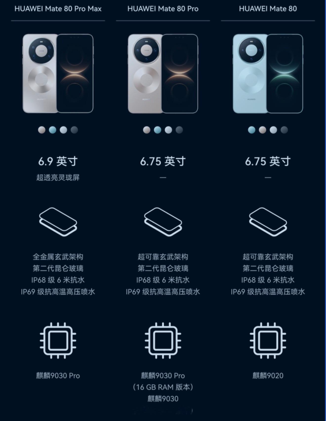 Mate80 标准版、Mate80Pro、Mate80ProMax 三款机型的处理器型号