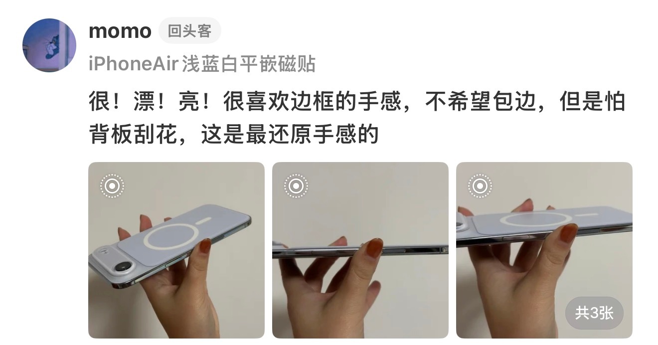 给小众机型做的小众配件,虽然无法保护边框,但它可以防背板刮花,同时还提升磁力体验。这款产品就是如此,也是咱们从裸机用户的需求出发做的一款产品。