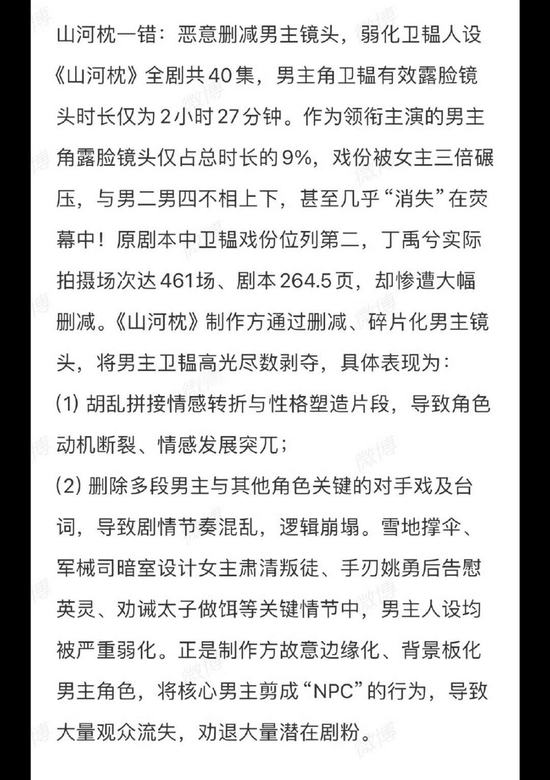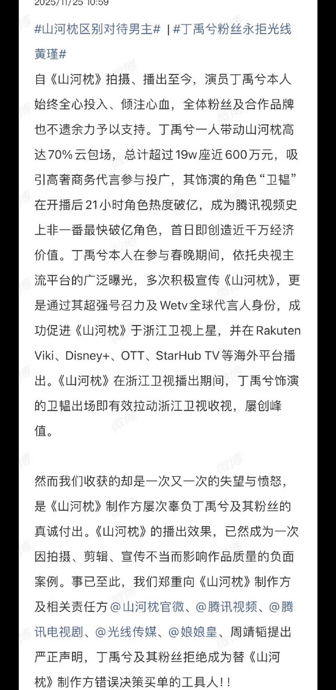 丁禹兮粉丝维👊🏻,山河枕贡献了70%☁️包场,努力参与宣传,但是丁禹兮戏份严重不足。