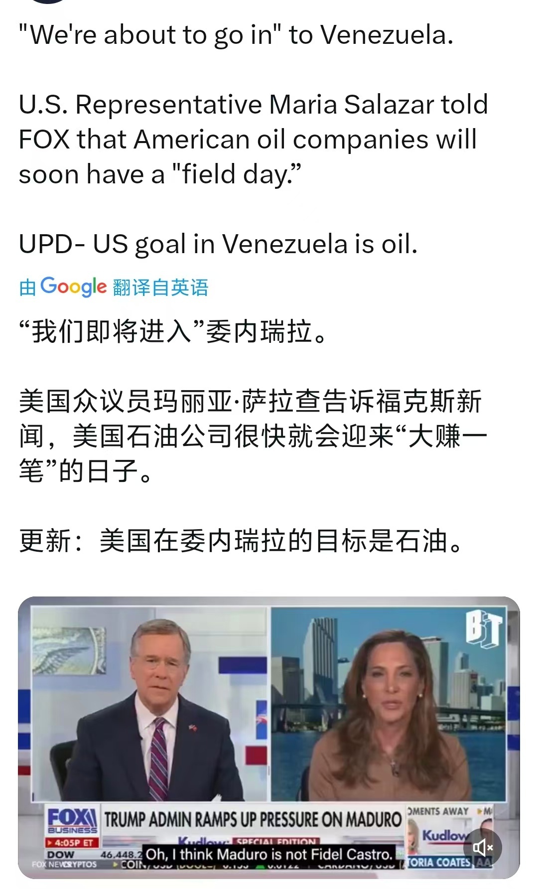 美国政客彻底不装了!美国众议员玛丽亚·萨拉查告诉媒体,美国“进入”委内瑞拉的目标