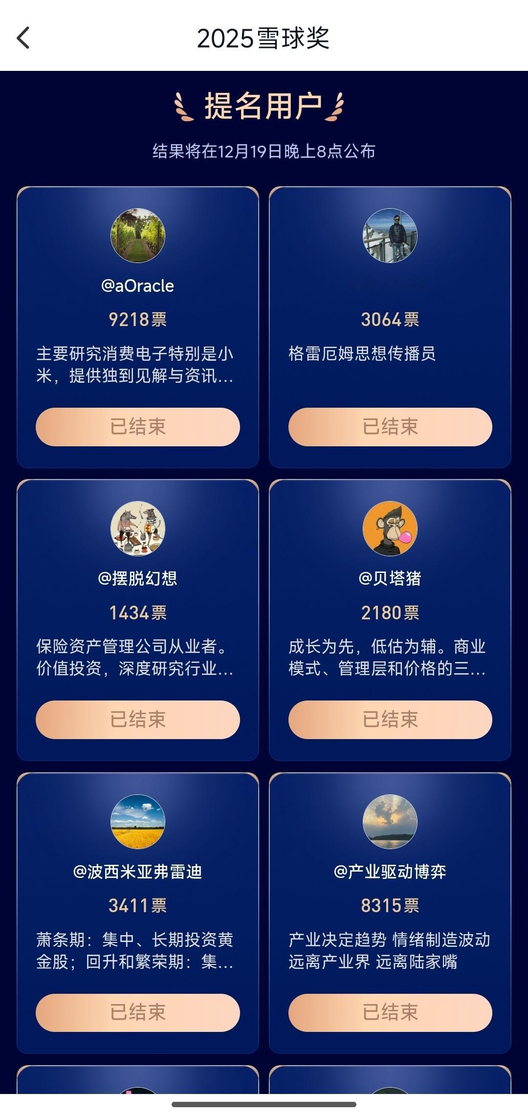 今年雪球奖的投票已经正式结束,最终得票 9218 票,排名 30 位提名人第 6。 感谢微博上每一位朋友的每一份支持,大家的每一票支持都让我们深深感动,结果其次,整个过程才是最珍贵的。我的每一篇《小米再出发》帖子下面都有各种不同的观点的输出与碰撞,投资本来就是自己认知的实践,无论看好或看空,大家做到知行合一就好。这一个《小米再出发》系列我会整理成PDF,后续上传链接,供所有朋友免费下载。再次感谢大家,让我们永远真诚、热爱,让我们从这里再出发,永远相信美好的事情即将发生!