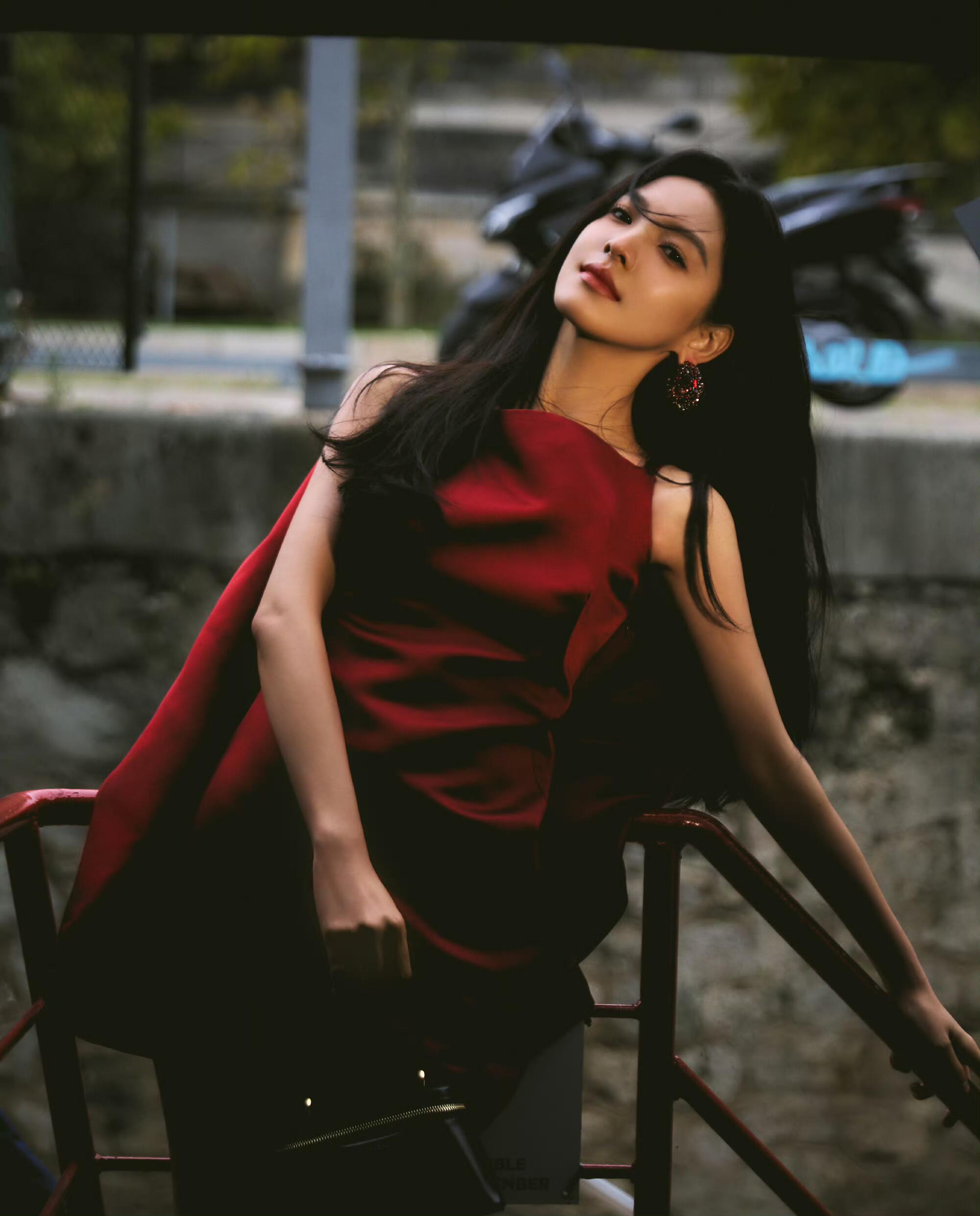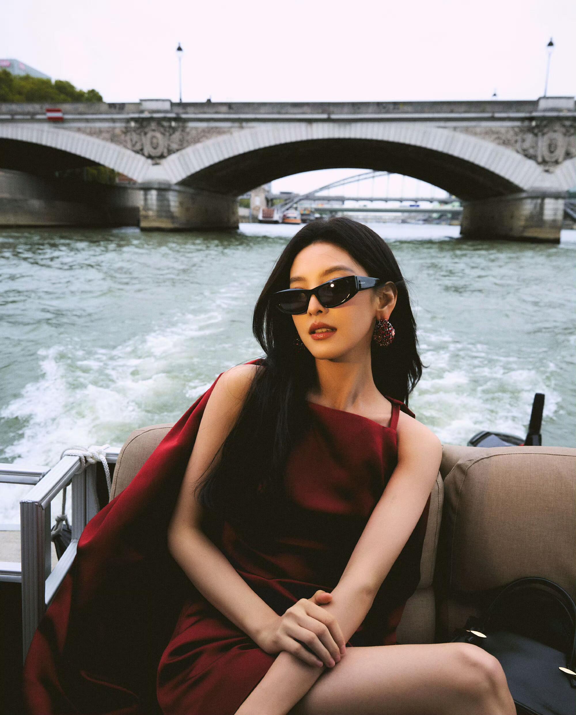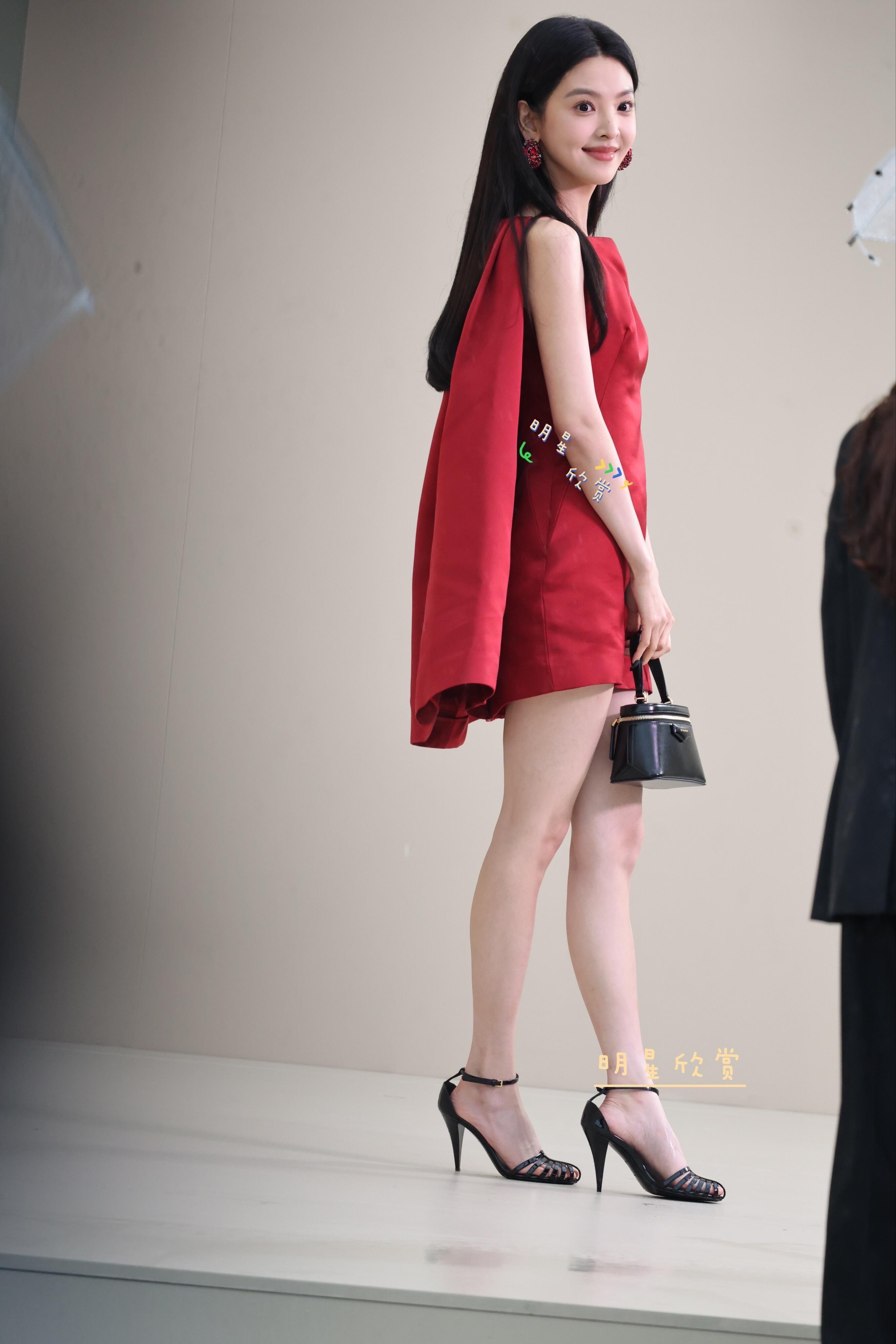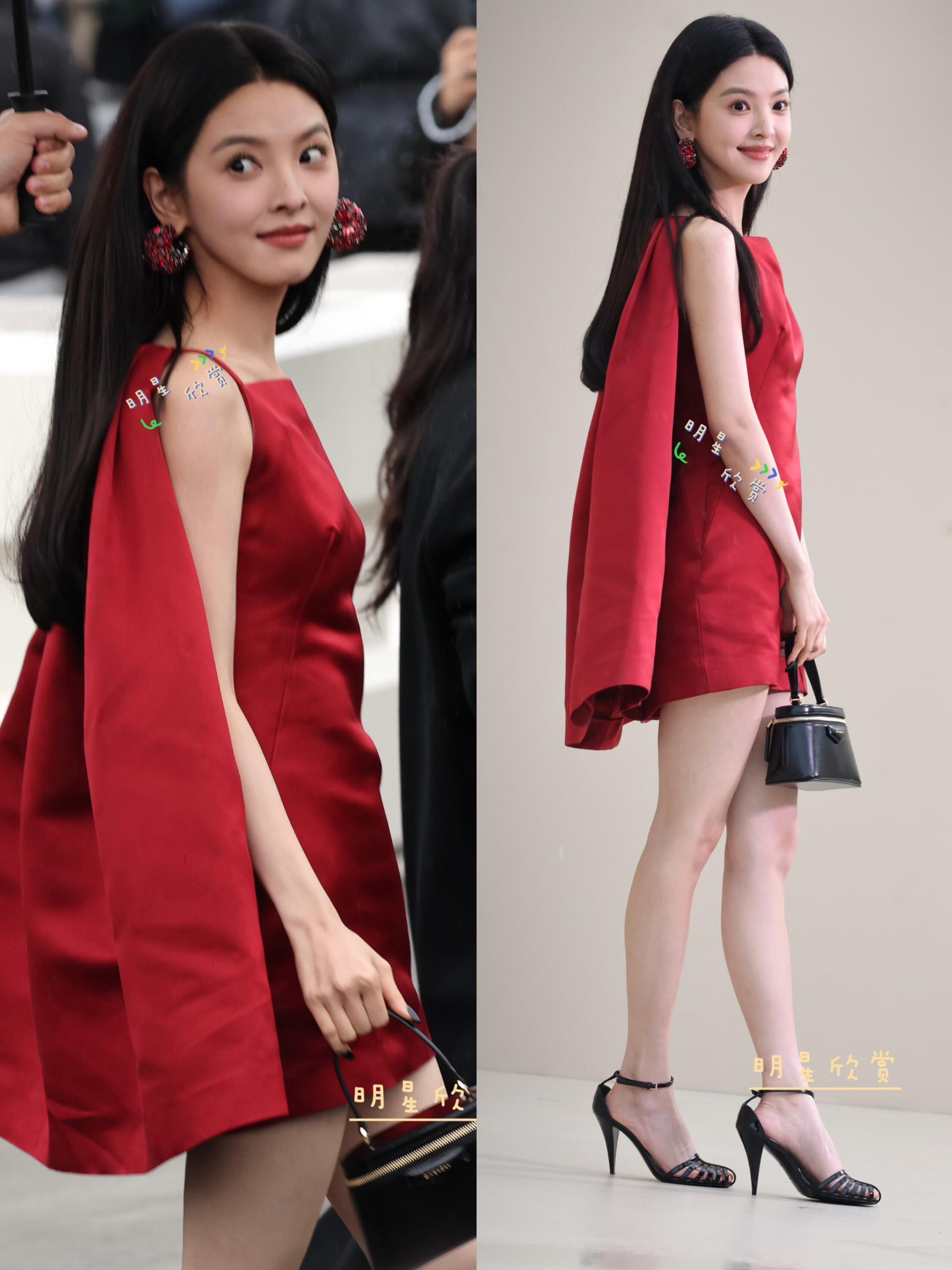 章若楠红裙香耀巴黎,是甜甜的楠楠