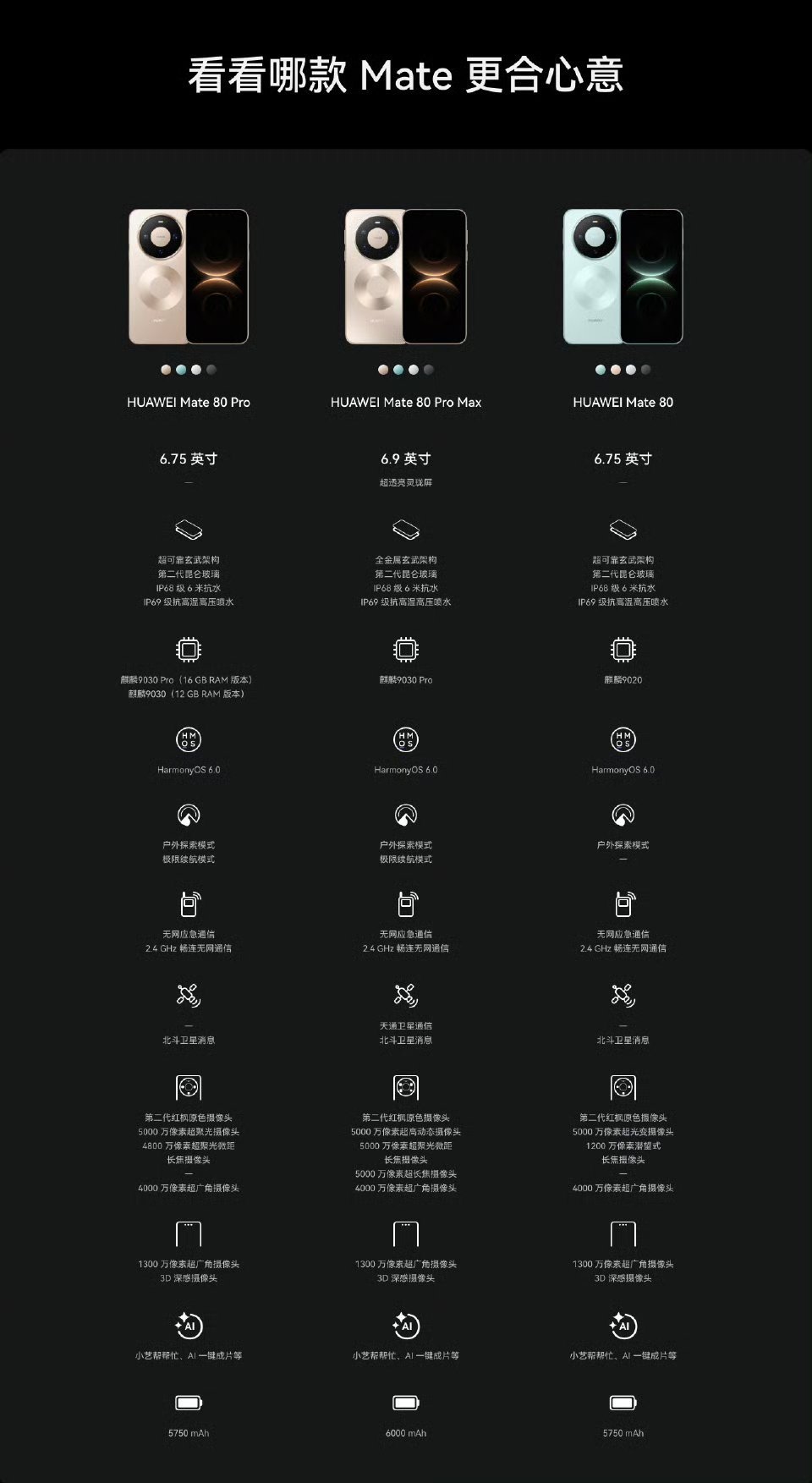 Mate80、Mate80Pro、Mate80ProMax之间的区别,