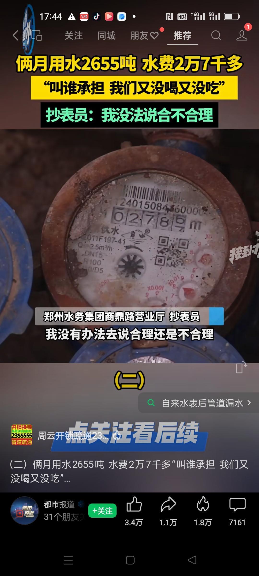 用户2个月用水2655吨,水费2万7千多,这分明是不合理。 结果水务集团查出来是水表后管道漏水,用水量还是算在用户头上。用户提出质疑,抄表工回应没法说合不合理。 这样把损失扣在用户头上,让用户出钱真是冤枉,那管道又不是用户自己修建的。冤有头债有主,施工方应该负责缴纳这水费。