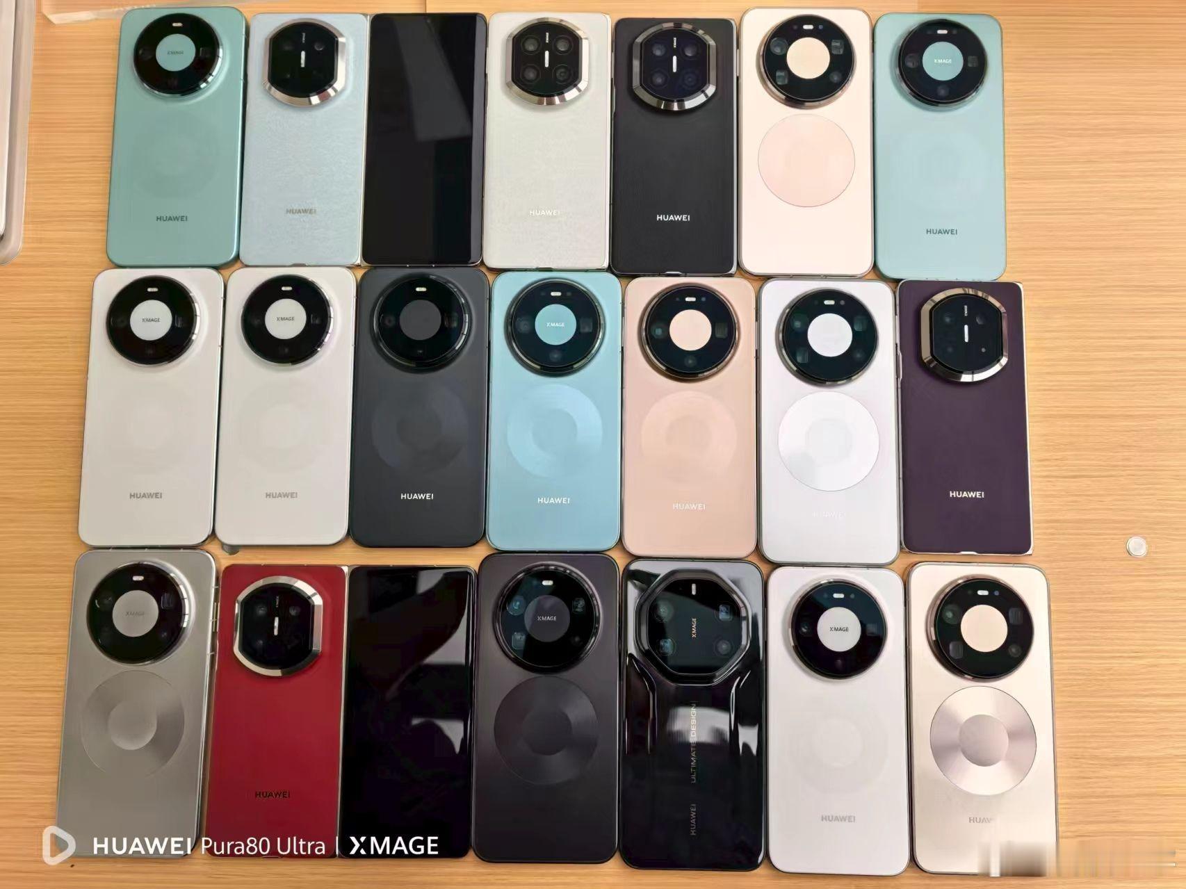好家伙,这是谁把今天所有 Mate80 系列和 X7 系列弄了个全家福出来,这基本所有颜色都凑齐了