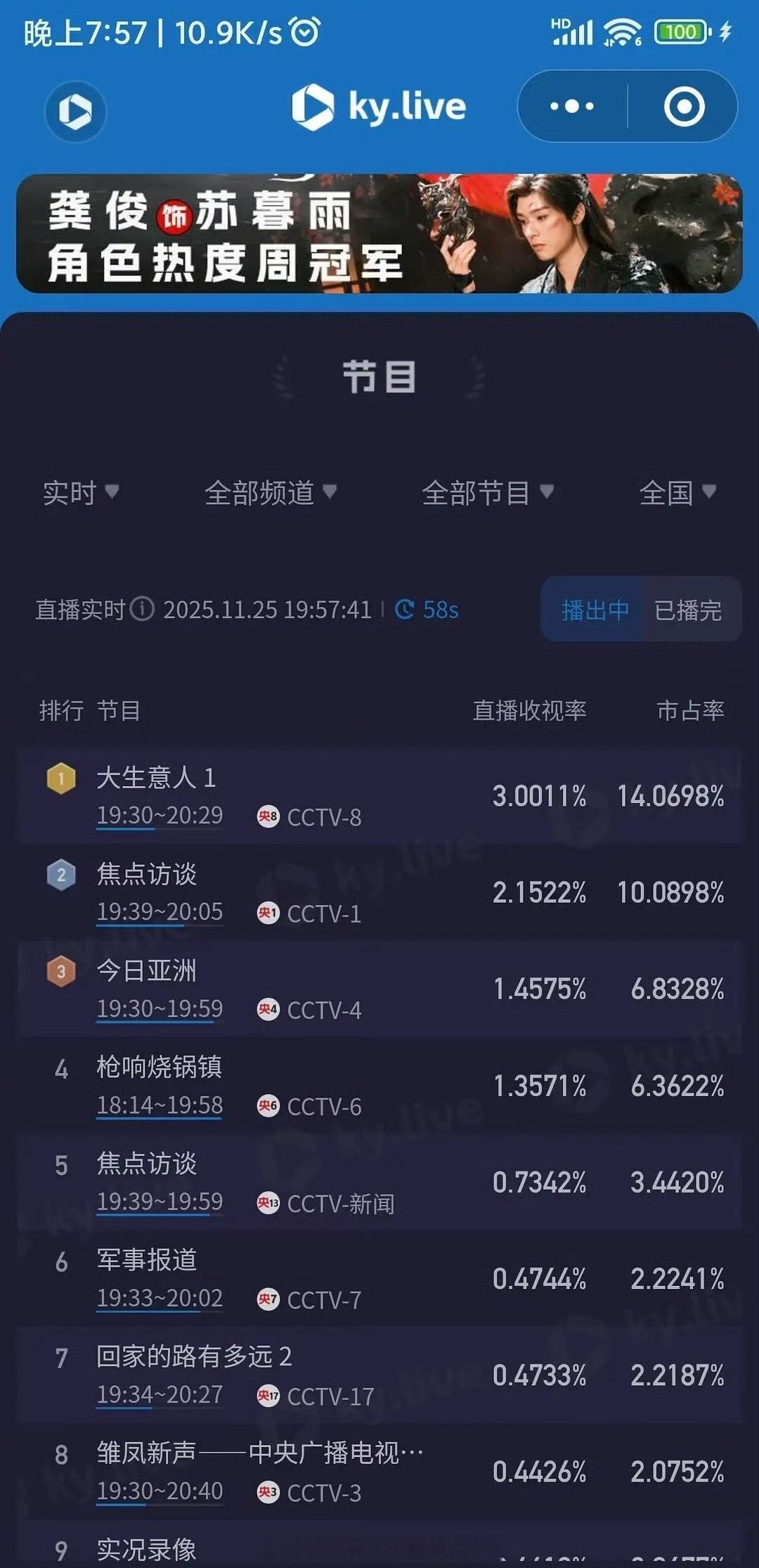 陈晓新剧《大生意人》首日5广,收视破3,成绩不错!!
