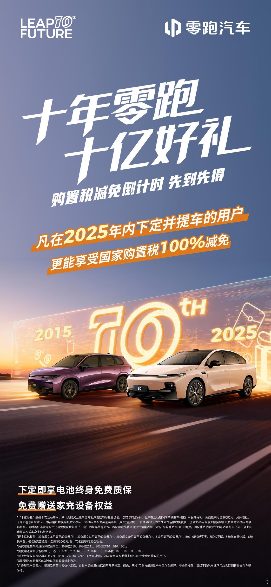 估计在 2025 年初,谁也没能想到零跑今年会这么猛。从 3 月起,零跑连续 8 个月稳坐新势力交付量第一的宝座:7-8 月单月销量突破 5 万,9 月冲刺至 6 万,10 月飙升至 7 万,11 月中旬更是直接提前 45 天搞定 50 万年度销量目标,势头一路高歌猛进。C系列SUV一直是用户的热门之选,C11更是凭借入门即豪华的核心价值,收获了市场的高度认可,之前也分析过消费者购买C11的核心原因主要源于好而不贵、口碑良好、质量稳定,目前累计销量也已突破30万台,成为零跑最受欢迎的产品之一。关键在于,零跑并非以牺牲利润为代价换取销量增长。在规模实现大幅扩张的同时,零跑成功跻身中国第二家实现盈利的造车新势力行列,且已达成连续季度盈利,三季度净利润1.5 亿元,用实力证明 “规模与盈利可兼得”。这一亮眼成绩的背后,离不开三大核心支撑:- 首先是坚持全域自研路线,在坚守品牌大众定位、保障产品高品价比的基础上,依然保持了还不错的毛利率,构建起核心技术壁垒;- 其次是出色的产品型谱规划,ABCD 产品布局持续完善,C 系列稳稳筑牢销量基本盘,B 系列成功撬动年轻消费市场增量,后续还将有旗舰D19,个性车型Lafa5和精品车型A10陆续上新,持续丰富产品矩阵;- 最后是加速推进的全球化布局,借助斯特兰蒂斯的资源优势,在海外迅速铺开 700 + 门店,截至今年 10 月累计出口超 4.4 万台,位居中国新势力品牌出口销量榜首,海外市场表现亮眼。提前达成 50 万目标的零跑依旧 “停不下来”:不仅创始人朱江明放出 “狠话”—— 明年销量目标剑指 100 万,同时在购置税减免政策倒计时之际,零跑全系车型还推出福利优惠 —— 现金礼包至高9500元。对于注重品价比和实用性的消费者来说,这波年终盛典堪称购车好时机,值得重点关注~